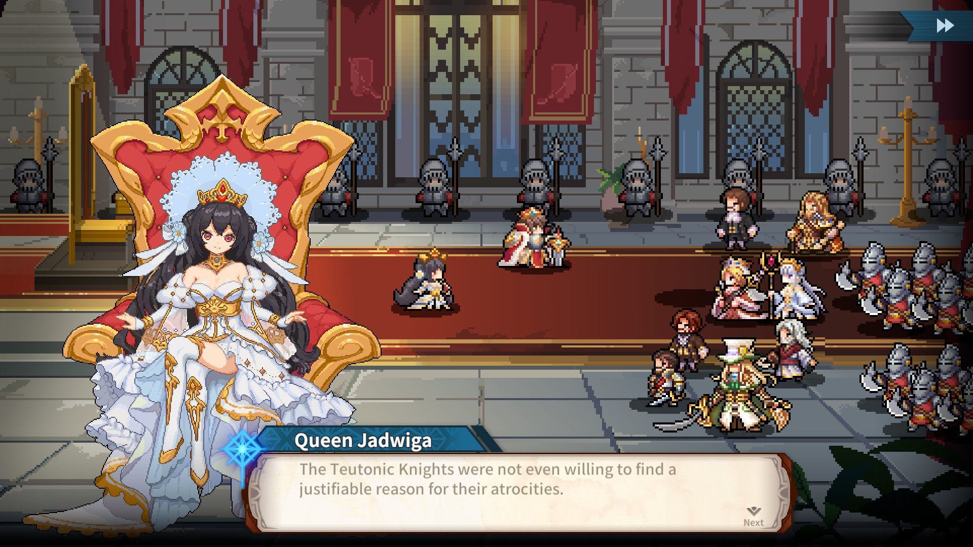 Przyznam się bez wstydu: komizm trójkąta miłosnego złożonego z twórczości Sienkiewicza, gier wideo i komunistycznych projektantów z Azji próbujących to ogarnąć całkowicie zdominował moje odczucia. To zbyt abstrakcyjna sytuacja, by bez mrugnięcia okiem zaakceptować naszych bohaterów narodowych w cukierkowo-mangowej stylistyce godnej gier mobilnych. Mieliśmy już co prawda japońskiego erpega o Chopinie (Eternal Sonata), ale strategia karciana przedstawiająca unię polsko-litewską opierającą się Krzyżakom to trochę grubsza sprawa.