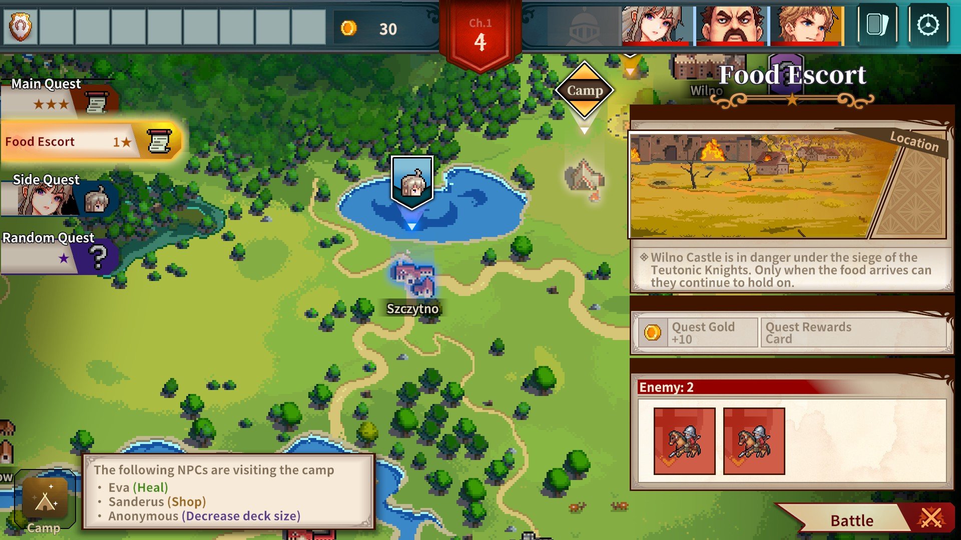 Przyjemnie rozpikselowana grafika może kojarzyć się z Wargroove’em, muzyka z wpisaniem frazy „średniowieczne melodie free mp3” w Google’a, a sama gra to krążenie po mapie Polski, by odpalać na niej karciane starcia. Krzyżacy pod tym względem nie odbiegają od większości produkcji indie i raczej nie mają zamiaru wybijać się swoją skalą ponad ustalenie pewnych reguł rozgrywki oraz skuteczne zapętlenie jej. Poza czytaniem dialogów, które próbują podpatrywać Fire Emblem (co się nie udaje, ale też nikt nie powinien tego oczekiwać), uwagę przykuwa przede wszystkim walka. Prezentuje ona dwa oddziały (nasz zawsze znajduje się po lewej stronie ekranu) okładające się w turach na polu bitwy umiejscowionym w XV-wiecznej Europie Środkowej.