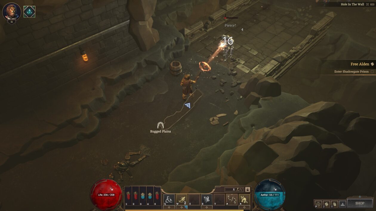 Same przedmioty zaś prezentują się całkiem w porządku, wśród affiksów (właściwości przedmiotu) znajdziemy nie tylko premie do statystyk i skilli, ale też opcje urozmaicenia i dodatkowego zróżnicowania rozgrywki. Na razie nie jest ich przesadnie wiele – no ale kto oczekuje tego już w pierwszym akcie zabawy? Dodatkowy plusik za graficzne podobieństwo plecaka do tych z Diablo 2, Grim Dawn i Path of Exile (przedmioty zajmują po kilka kratek, a nie „równe” sloty), a nie Diablo 3 i 4. Jeśli ktoś ma słabość do oldschoolowej zabawy w tetrisa – witamy w domu.