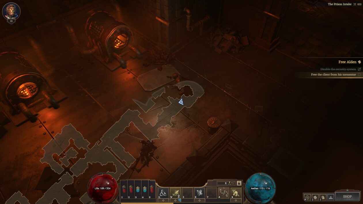 Czy jednak kupi mnie ogólny klimat? Jest szansa, że owszem. CF potrafi zrobić dobre wrażenie płynnym przejściem od arcanepunka przygodowo-baśniowego do całkiem mrocznego, przynajmniej w kwestii wystroju map. Na razie narracja wydaje mi się zbyt oszczędna i nie spina tego wszystkiego ciekawym, dobrze podanym tłem fabularnym – z tym zadaniem dużo lepiej radzi sobie dowolne Diablo, Grim Dawn, oba Path of Exile czy Titan Quest. Wiecie, mechaniki mechanikami – a lore’owi wyjadacze też lubią rozkopywać hack’n’slashe. To mniejszość, ale nawet casualowy gracz potrzebuje jakiejś sensownej motywacji, żeby się przespacerować po lokacji i przetrzebić lokalną faunę, florę i populację automatonów.