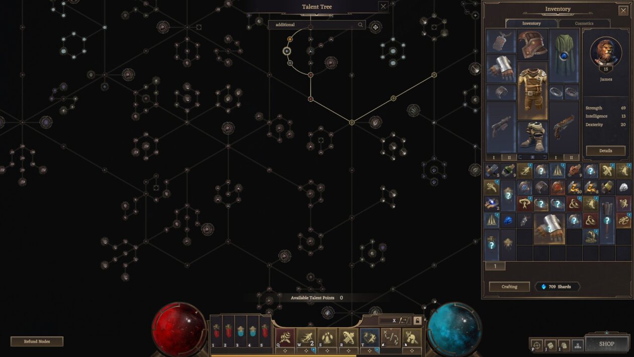 Szkoda, bo za pod tym wszystkim kryje się kilka może nie odkrywczych, ale ciekawych systemów. Widać, że ktoś tu zgapiał drzewko umiejętności z Path of Exile – nie tylko pod względem rozmiaru, ale też różnorodności. Wiele większych „pasywek” wypada całkiem kreatywnie i może interesująco wpłynąć na sposób grania daną postacią. Gra oferuje wiele opcji typu „coś za coś” (np. większe ataki obszarowe, ale za cenę braku obrażeń krytycznych) – im dalej od centrum drzewka, tym robi się ciekawiej. Zobaczymy tylko, jak to wszystko zostanie zbalansowane.