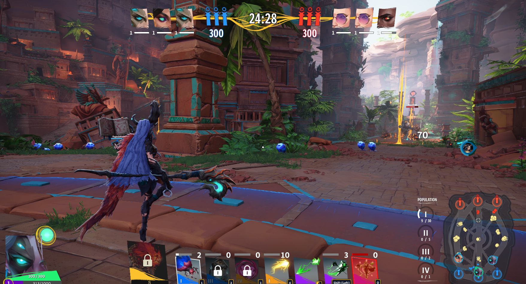Pierwsze kilkanaście minut upłynęło na próbie odgadnięcia, co tak naprawdę dzieje się na mapie, jakie zadania się przede mną stawia oraz którego czaru i w jakiej sytuacji powinienem używać. Zgodnie z wcześniejszym wrażeniem, rozgrywkę charakteryzowała spora dawka chaosu. Każdy z sześciu graczy (podzielonych na dwie drużyny po 3 herosów) potrafi latać, przywoływać jednostki, stawiać budynki i razić przeciwników efektownymi zaklęciami. Odnalezienie się w feerii kolorowych wybuchów i towarzyszących im cyferek, ogarnięcie optymalnego sposobu używania zdolności, ulepszanych zresztą zdobywanymi co chwilę kolejnymi poziomami doświadczenia, nie było łatwe.