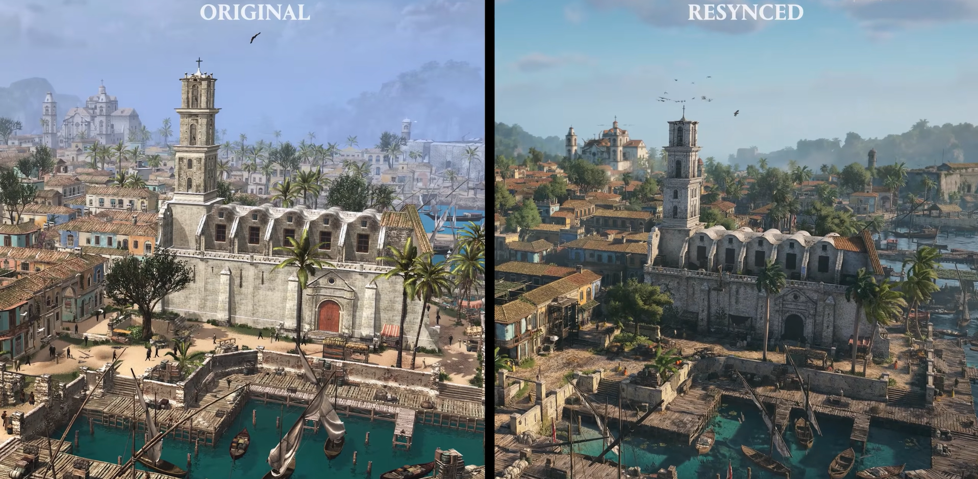 Materiały przekazane przez Ubisoft udostępnił na YouTubie kanał Enfant Terrible. Dopiero po porównaniu remake’u z oryginałem widać, jak ogromna jest różnica między tymi dwiema wersjami. Przypomnijmy, że Assassin’s Creed: Black Flag Resynced powstaje na najnowszej wersji Anvil, autorskiego silnika Ubisoftu. Nie trzeba być specjalistą, by zobaczyć, że jakość grafiki znacznie się poprawiła.