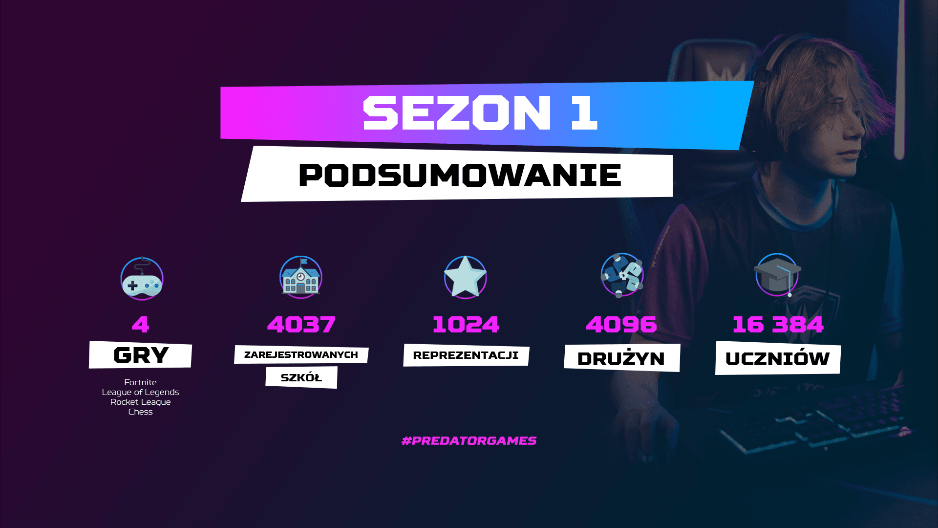 Turniej Predator Games organizowany przez agencje WE!RE Fantasy i Gam3rs_x, należące do grupy Fantasyexpo obejmował szkoły podstawowe i licea. W pierwszym sezonie uczestniczyło ponad 16 tysięcy uczniów z 1024 placówek edukacyjnych z całej Polski. Rozgrywki odbywały się w grach takich jak Fortnite, Rocket League, League of Legends oraz szachy, a w puli nagród znajdował się sprzęt komputerowy dla zwycięskich drużyn i ich szkół, oraz welcome packi, których łączna wartość przekraczała 3 miliony złotych.