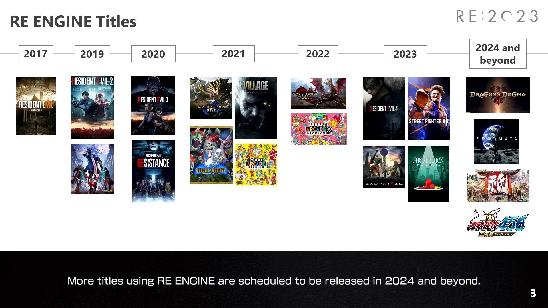 Parę lat młodszym od silnika Bethesdy jest RE Engine Capcomu, rozwijany od 2014 roku. Pierwszy raz użyty został trzy lata później w Resident Evil 7: Biohazard i był obecny w kolejnych produkcjach japońskiej firmy. W tym były między innymi: Devil May Cry 5, kolejne gry z serii Resident Evil czy Street Fighter 6. Nowa wersja RE Engine o nazwie kodowej REX Engine ma w przyszłości wspierać przede wszystkim Dragon’s Dogma 2.