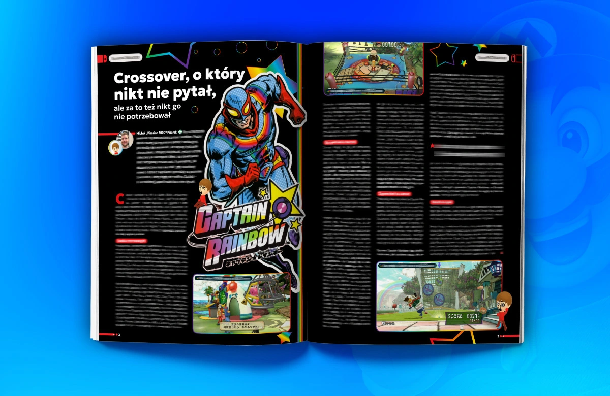 Następnie po raz pierwszy pojawia się format, który w okresie produkcyjnym magazynu nazwałem roboczo „Znajdźki”. W skrócie: poprosiłem różnych autorów, i naszych wewnętrznych, i takich występujących gościnnie, o polecenie mi (tj. naszym czytelnikom, ale nie ukrywam, że sam również z tych polecanek skorzystałem!) gier dostępnych na Switchu i Switchu 2, które zasługują na gigantyczny rozgłos, a go nie otrzymały. To oczywiste, że wielokrotnie przez magazyn przewija się Mario czy Zelda, ale to przecież konsole z tak bogatą biblioteką, że nie powinniśmy zatrzymywać się na oczywistościach. Bartek „Pan Nindyk” Wanot pewnie nie wiedział, proponując Katana Zero, że ja też uważam tę produkcję za arcydzieło (więc nie mógłbym z czystym sumieniem tej propozycji odrzucić!). Ja z kolei nie miałem pojęcia, że Big Hops (które poleca Barnaba „b-side” Siegel) to kolejny dowód na to, że jesteśmy świadkami renesansu gier platformowych. Albo o tym, że popularna karcianka Shadowverse ma na Switchu bardzo wysoko oceniany, ale szerzej nieznany singlowy spin-off, Shadowverse: Champion’s Battle. O tym z kolei dał mi znać Jędrzej „Grajowy” Szweda-Smok z kanału YouTube Zagrajnik. Na przestrzeni całego magazynu polecamy znacznie więcej – a w ramach tego formatu pojawiają się też: