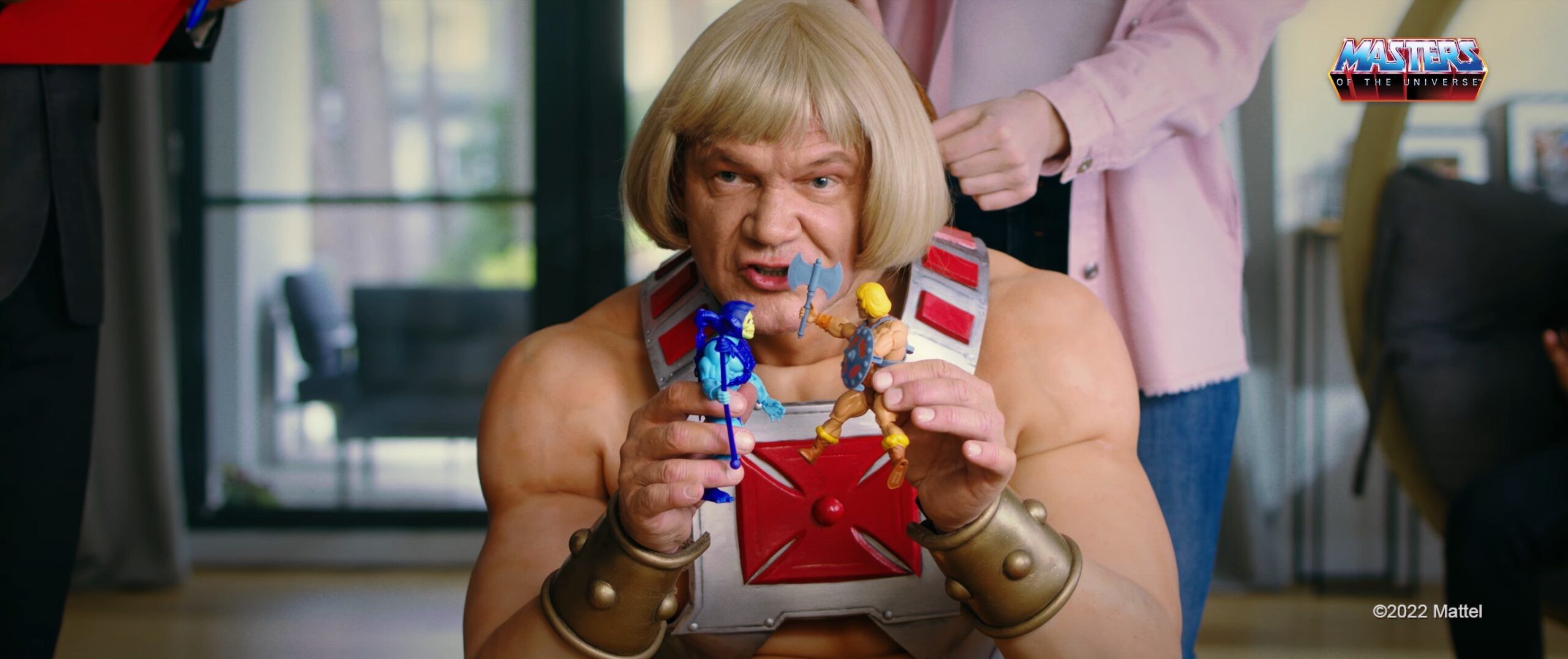 Cezary Pazura w roli He-Mana reklamuje figurki firmy Mattel