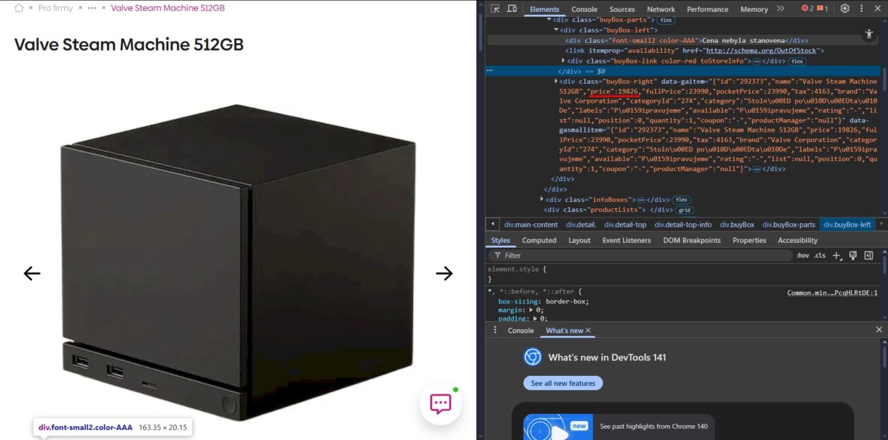 Tak wygląda kod źródłowy strony ze Steam Machine 512 GB / źródło: Smarty.cz