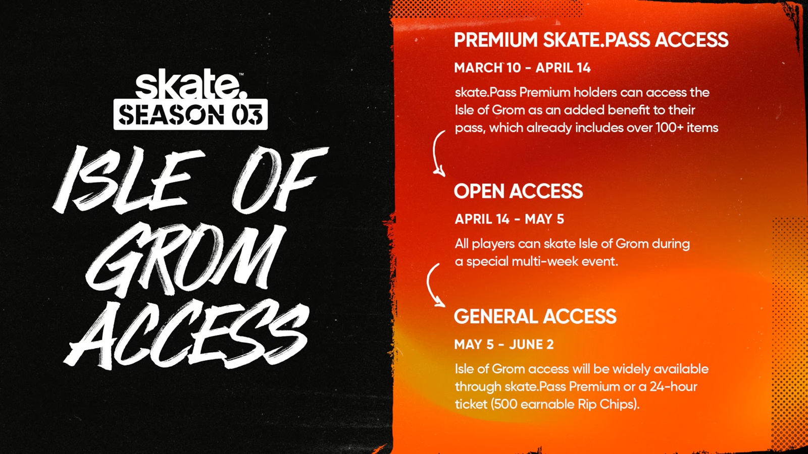 Niebawem w skate. rozpocznie się trzeci sezon, którego jedną z największych nowości będzie Isle of Grom, czyli ulepszona i powiększona samouczkowa mapa dostępna na równi z innymi. A przynajmniej tak chcieliby tego gracze, bowiem – jak EA napisało we wpisie na stronie tytułu – faworyzowani będą w tym względzie posiadacze skate.Passa Premium, płatnej przepustki sezonowej. To oni przez niemal miesiąc dostaną rzeczoną mapę do testowania i dopiero później zostanie czasowo udostępniona reszcie osób.