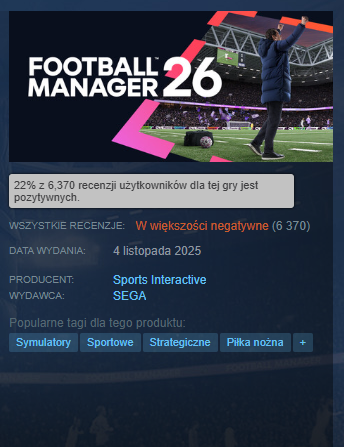 Football Manager 26 mieszany z błotem. Użytkownicy Steama są bezlitośni