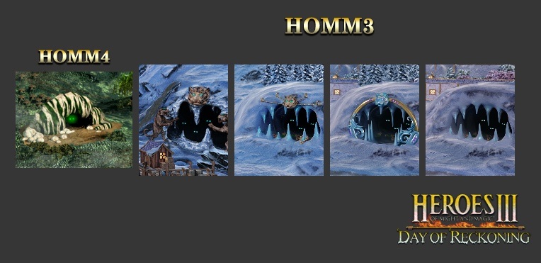 Twórcy podzielili się też ciekawymi grafikami i koncepcjami dotyczącymi jednego z siedlisk w Pałacu. W Day of Reckoning powrócą bowiem znane z Heroes 4 białe tygrysy, a autorzy moda nie kryją, że chcieli właśnie przenieść do trzeciej części także charakterystyczne dla tych istot siedlisko. Jaskinia ze spoglądającymi na nas ślepiami została więc przerobiona na nieco bardziej lodową i ostatecznie efekt końcowy możemy podziwiać na poniższym obrazku.