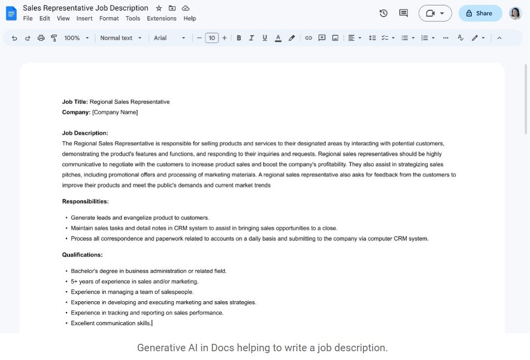 W przypadku maila lub Google Docs koncern podaje proste przykłady. Możemy na przykład w pojawiające się w polu edycji okno sztucznej inteligencji wpisać polecenie, np. ogłoszenie o pracę – a AI zajmie się całą resztą, po chwili proponując nam szkic tekstu, który następnie możemy samodzielnie zmienić, wprowadzając kluczowe dla nas poprawki.