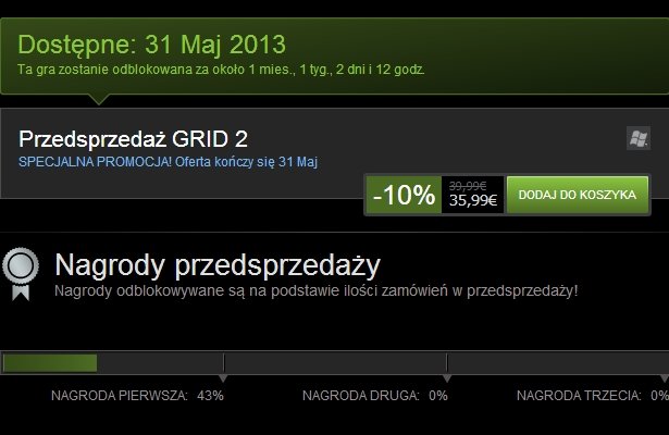 Ciekawy zabieg ze strony Steama i widoczny wpływ trendu progów na Kickstarterze. Na katalogowej stronie GRID 2 pojawił się zestaw bonusów, na które mogą liczyć gracze zamawiający grę przed premierą. Co interesujące — liczba dodatków jest uzależniona od tego, jak wielu klientów zdecyduje się na pre-order.