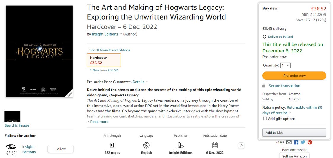 Do rzeczy: na Amazonie pojawił się obszerny album, zatytułowany „The Art and Making of Hogwarts Legacy: Exploring the Unwritten Wizarding World”. W opisie znajdziemy krótką zachętę: