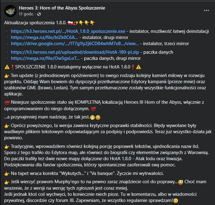 Najnowszą wersję spolszczenia moda Horn of the Abyss do Heroes 3 pobierzecie z podlinkowanego wyżej posta.