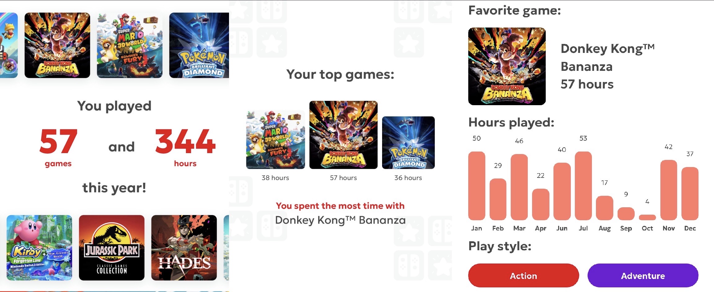 Osobiście najwięcej czasu poświęciłem na Donkey Konga Bananzę (odsyłam do mojej recenzji), Super Mario 3D World + Bowser’s Fury oraz Pokemon Brilliant Diamond. W 2025 roku na Switchu i Switchu 2 uruchomiłem łącznie 57 gier, poświęcając im 344 godziny. Wniosek jest tylko jeden – w 2025 roku grałem naprawdę sporo, biorąc pod uwagę, że dodatkowe setki godzin spędziłem jeszcze z PlayStation 5. A u was, jak to wygląda? Dajcie znać w komentarzach!