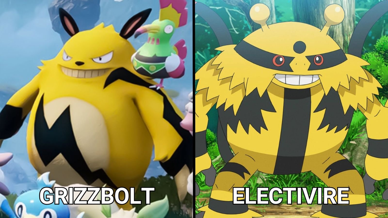 Podobna sytuacja ma miejsce w przypadku Grizzbolta. Choć dobrze widoczne są różnice w proporcjach ciała, oczach czy nosie, to wciąż uderzające jest jego podobieństwo do Electivire’a. Oba są sporymi stworzeniami władającymi elektrycznością, mogącymi przy okazji użyć brutalnej siły. Electivire’a oraz Grizzbolta łączą także czarne, grube pasy rozłożone po całym ciele, a także wystające elementy futra, gdzie drugi ma je mniej wyraźne niż pierwszy. Podobnie szczerzące się zęby sugerują podobny, zawadiacki charakter owych stworów.