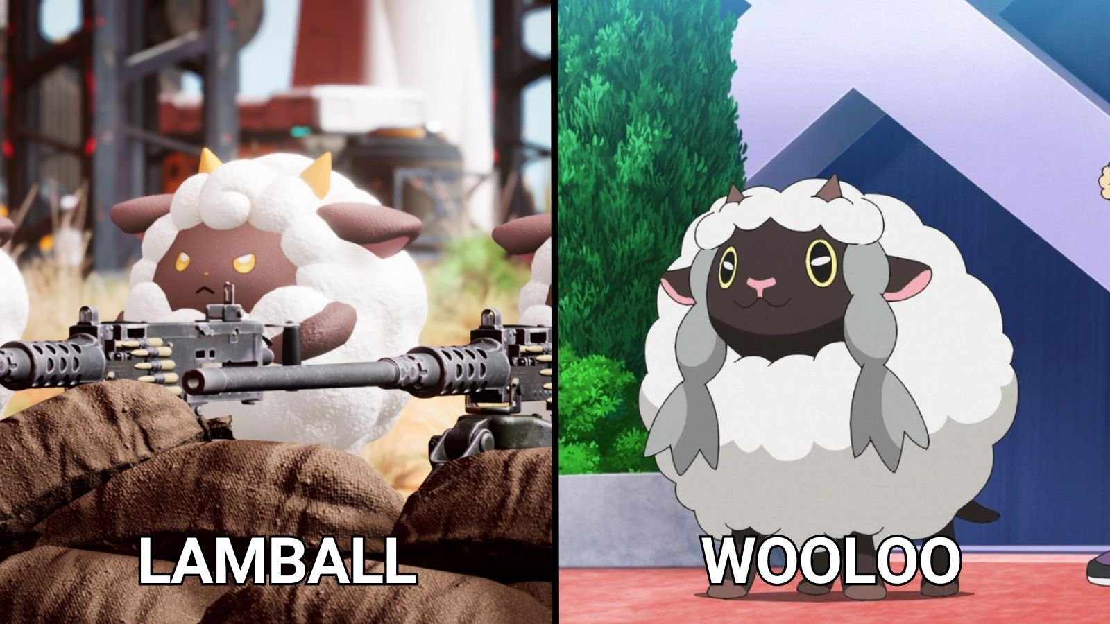 Jednym z takich jest poniższy Lamball. Pomijając puszystość owcy, podobieństwa widać w kilku innych elementach: spiczaste różki, oklapłe uszy, ciut infantylny charakter. Różnicą jest oczywiście stanie na dwóch łapach Lamballa (oraz ciężki karabin maszynowy). Niemniej to jest właśnie ten element, który ma dać złudzenie, że ten Pal jest czymś innym niż jego pokemonowy odpowiednik. Warto dodać, że oba są typu normalnego.