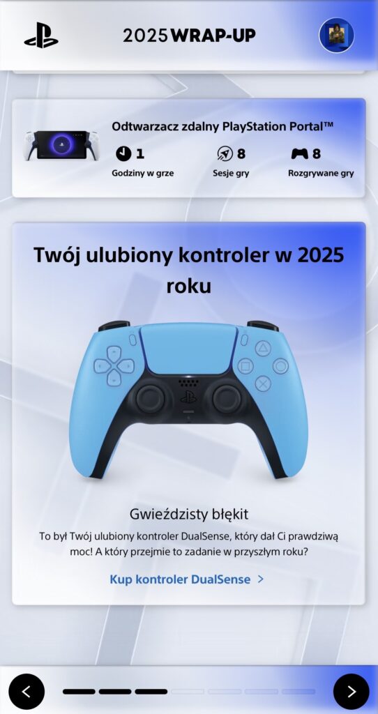 Za udział w PlayStation Wrap-Up 2025 przysługuje też nagroda w postaci darmowego awatara, którego możecie użyć do personalizacji swojego konta PlayStation. Sony zaznacza, że podsumowanie zostało przygotowane na podstawie naszej aktywności w tym roku i będzie wciąż aktualizowane do końca 2025. Cały program ma zaś pozostać aktywny do 8 stycznia 2026.