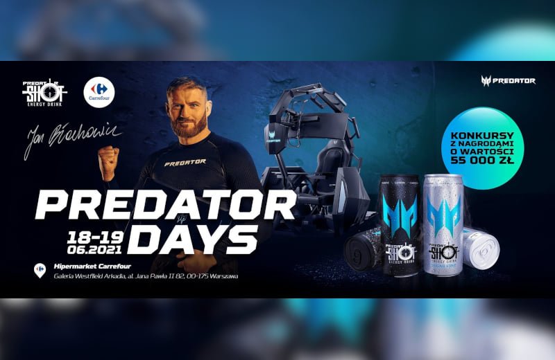 Predator Days to dwa dni wypełnione atrakcjami i konkursami przeznaczonymi dla miłośników gier komputerowych. Wydarzenie towarzyszy premierze w sieci sklepów Carrefour napoju energetycznego dla graczy Predator Shot w wersji bez cukru. W imprezie wezmą udział: ambasador marki Predator, Jan Błachowicz oraz popularny influencer Smarte. Goście odwiedzający w dniach 18-19 czerwca 2021 r. strefę Predator w galerii Westfield Arkadia w Warszawie będą też mogli zdobyć atrakcyjne nagrody.