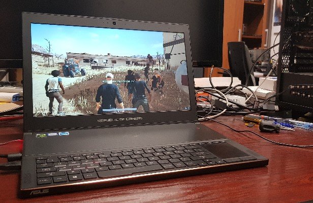 Zresztą nie tylko pracy, ale także zabawy. Asus Zephyrus (to on był tym notebookiem z Max-Q) jest nie tylko znacznie lżejszy, ale także wydajniejszy od desktopa zarówno redakcyjnego, jak i domowego. Skoro zaś miałem się z nim zaprzyjaźnić, to dlaczego by tego nie zrobić na całego? Wbudowany dysk SSD 512 GB w zupełności wystarczył, by zainstalować soft niezbędny w redakcji, a do tego dorzucić PUBG-a – i mieć jeszcze hektary na materiały.