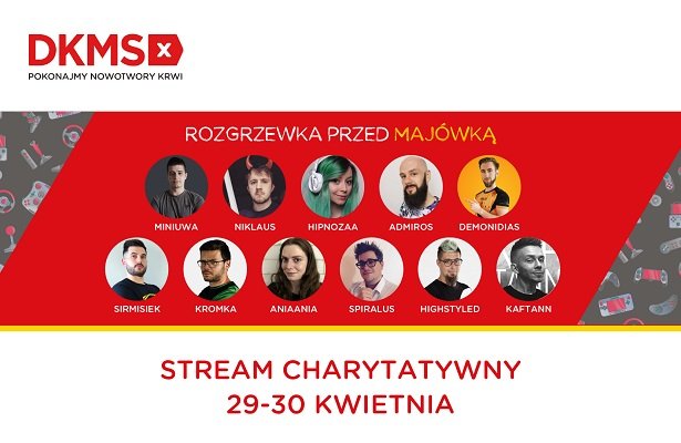 Podczas transmisji Rozgrzewka przed majówką z Fundacją DKMS, która łącznie będzie trwała 22 godziny, pojawią się znani twórcy internetowi, czyli Miniuwa, Admiros, Demonidias, Hipnozaa, SirMisiek, HighStyled, Niklaus, Kaftann, Kromka, Spiralus oraz AniaAnia.