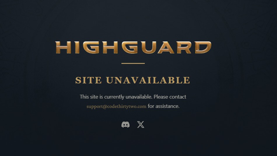 Stało się: oficjalna strona Highguarda przestała działać. Zamiast normalnej witryny dostajemy zaledwie ekran z komunikatem „This site is currently unavailable”, a poniżej znajduje się adres do supportu. Kotaku skontaktowało się z Wildlight Entertainment, ale studio na razie milczy.