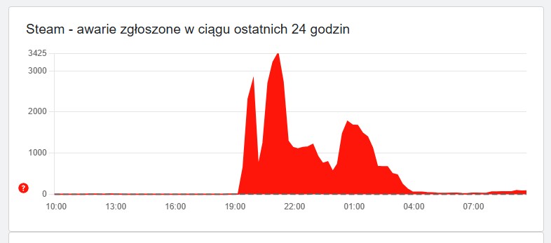 Użytkownicy informowali o trudnościach z dostępem do sklepu, funkcji społecznościowych, z logowaniem i rozgrywką. Na stronie SteamDB, śledzącej status platformy Valve, można było znaleźć statystyki, które wskazywały na to, że Steam faktycznie leży.