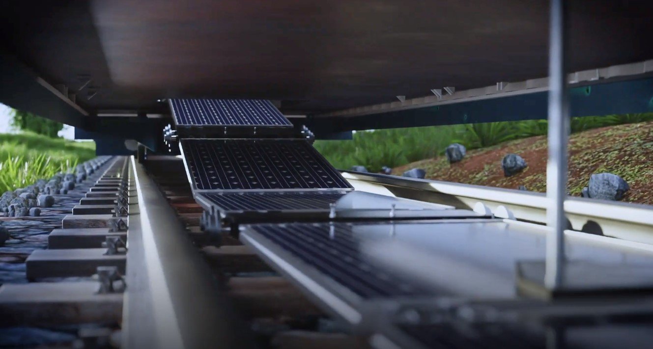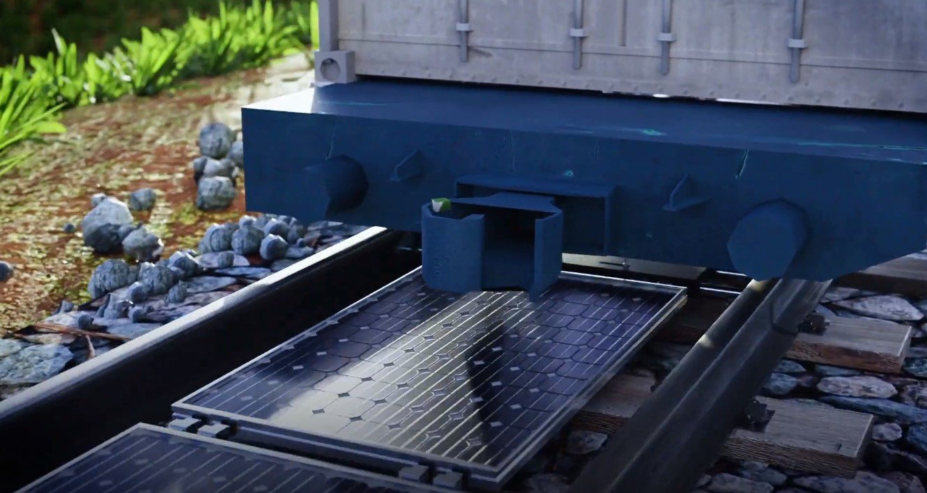 Już widzę oczyma wyobraźni kolejny dodatek do Train Simulatora. Przedstawiana tu technologia to pomysł Sun-Ways – szwajcarskiego start-upu, który, czekając na zgodę urzędu transportu na szersze wdrożenie pomysłu w życie, zaczyna testowo rozkładać panele słoneczne na torach w pobliżu jednej ze szwajcarskich stacji.