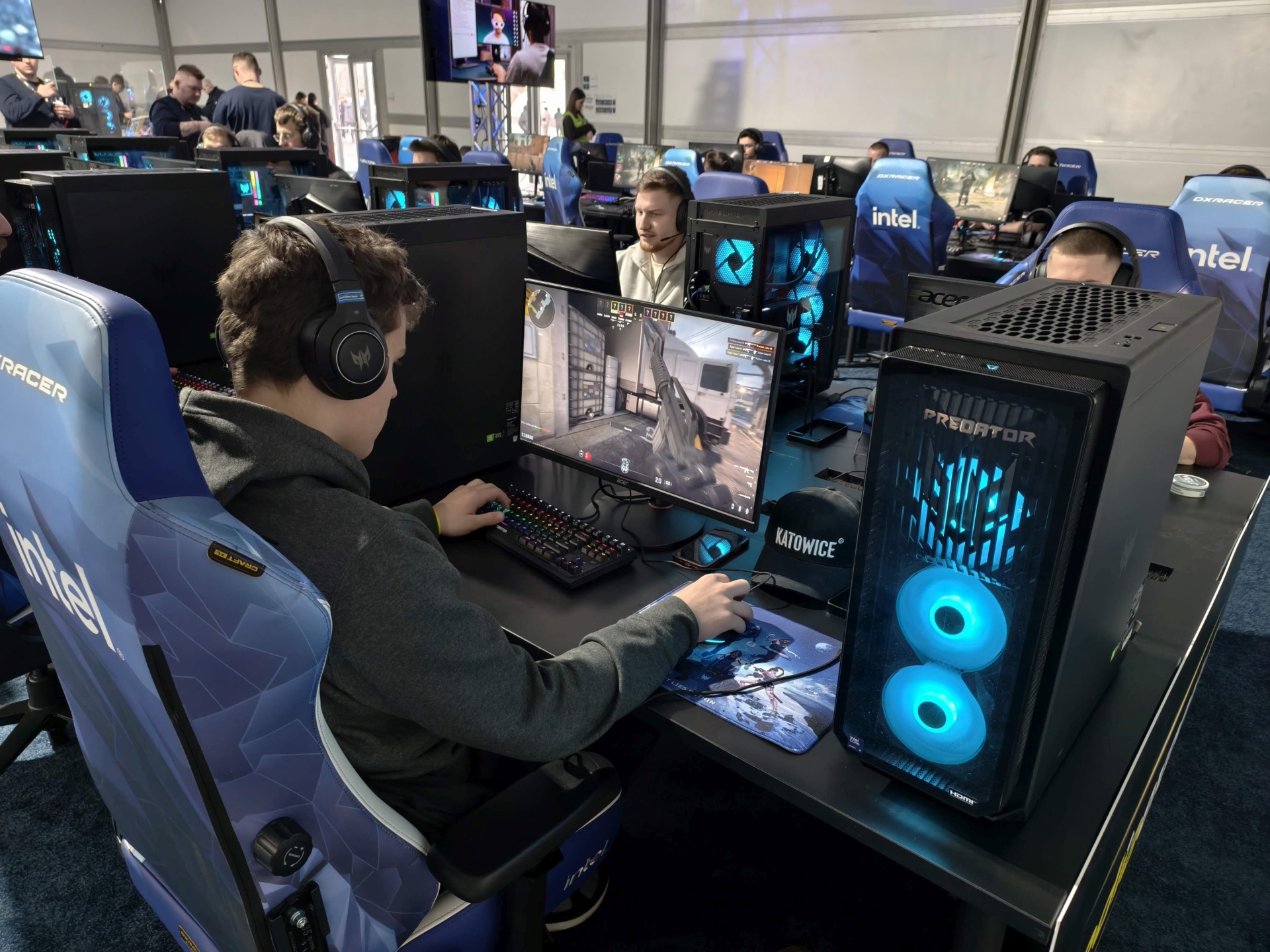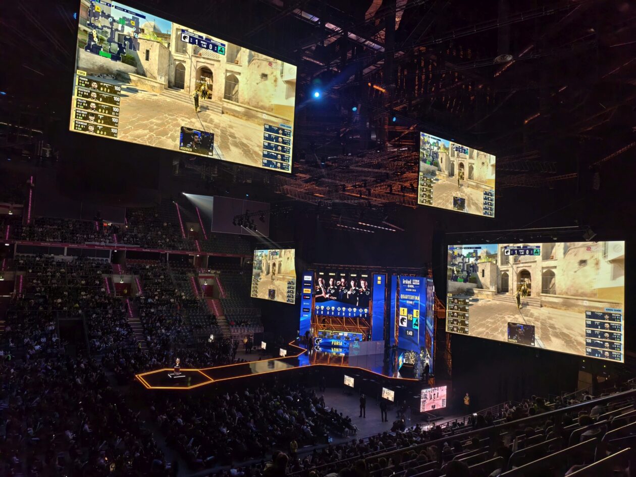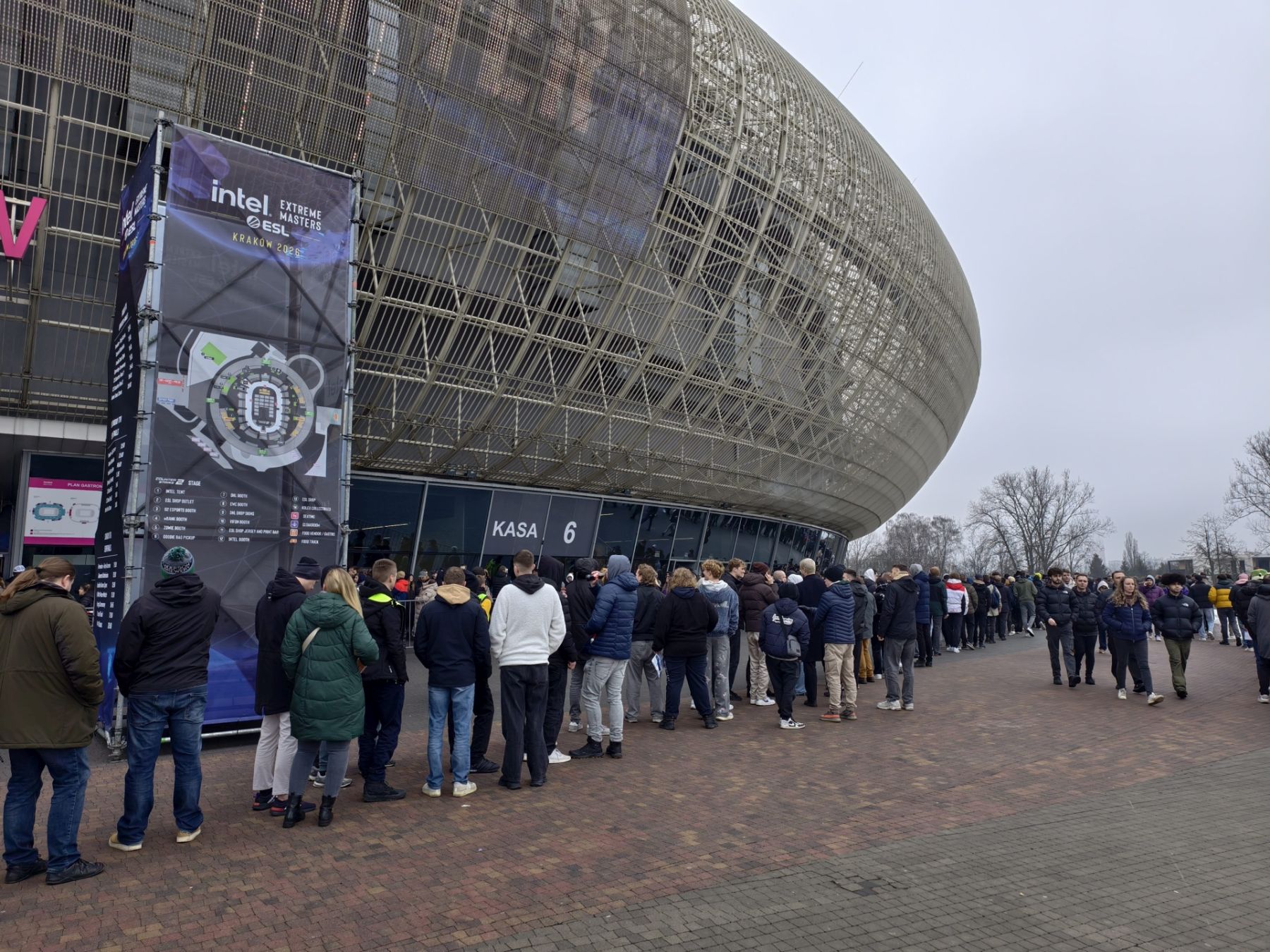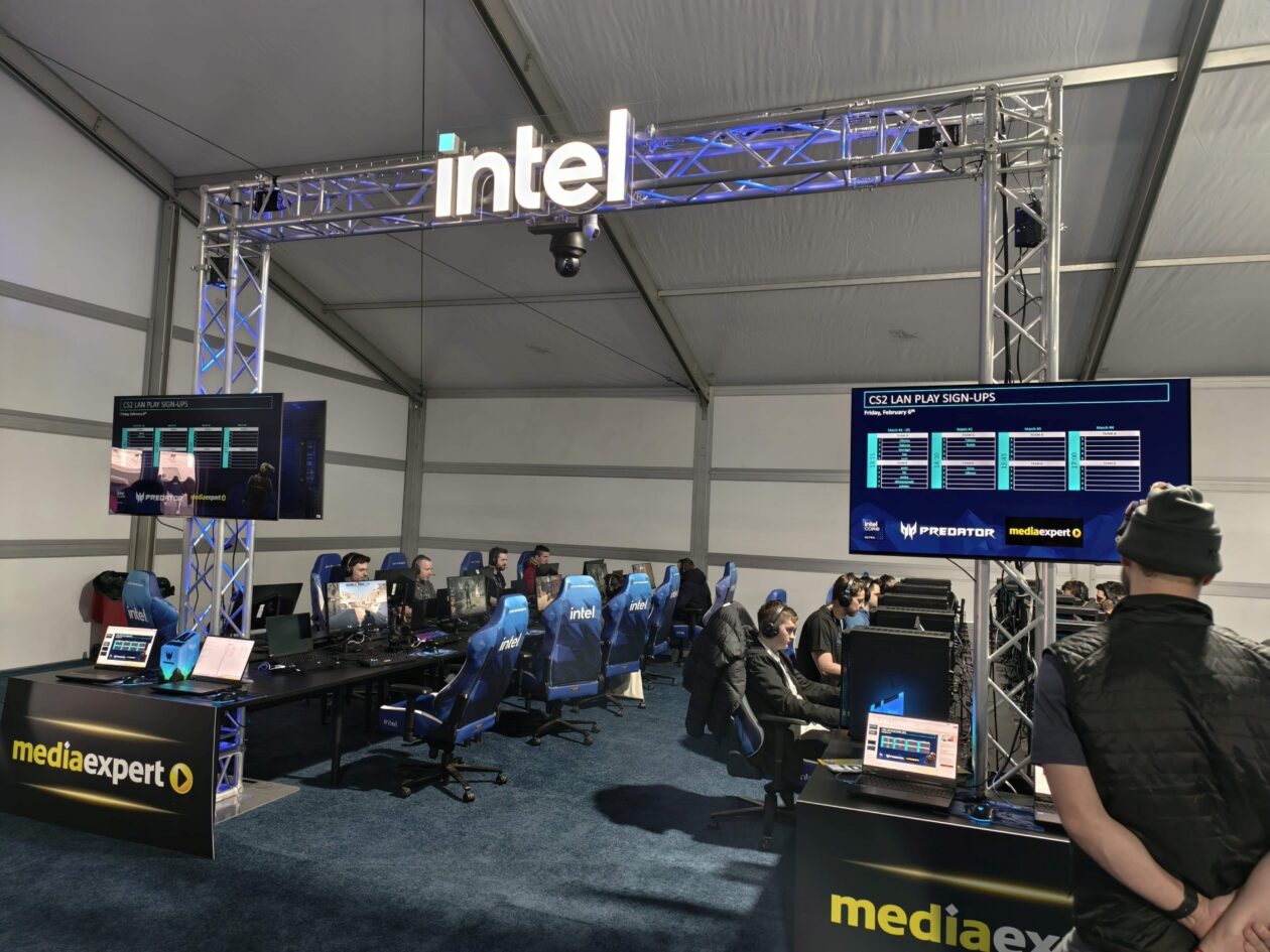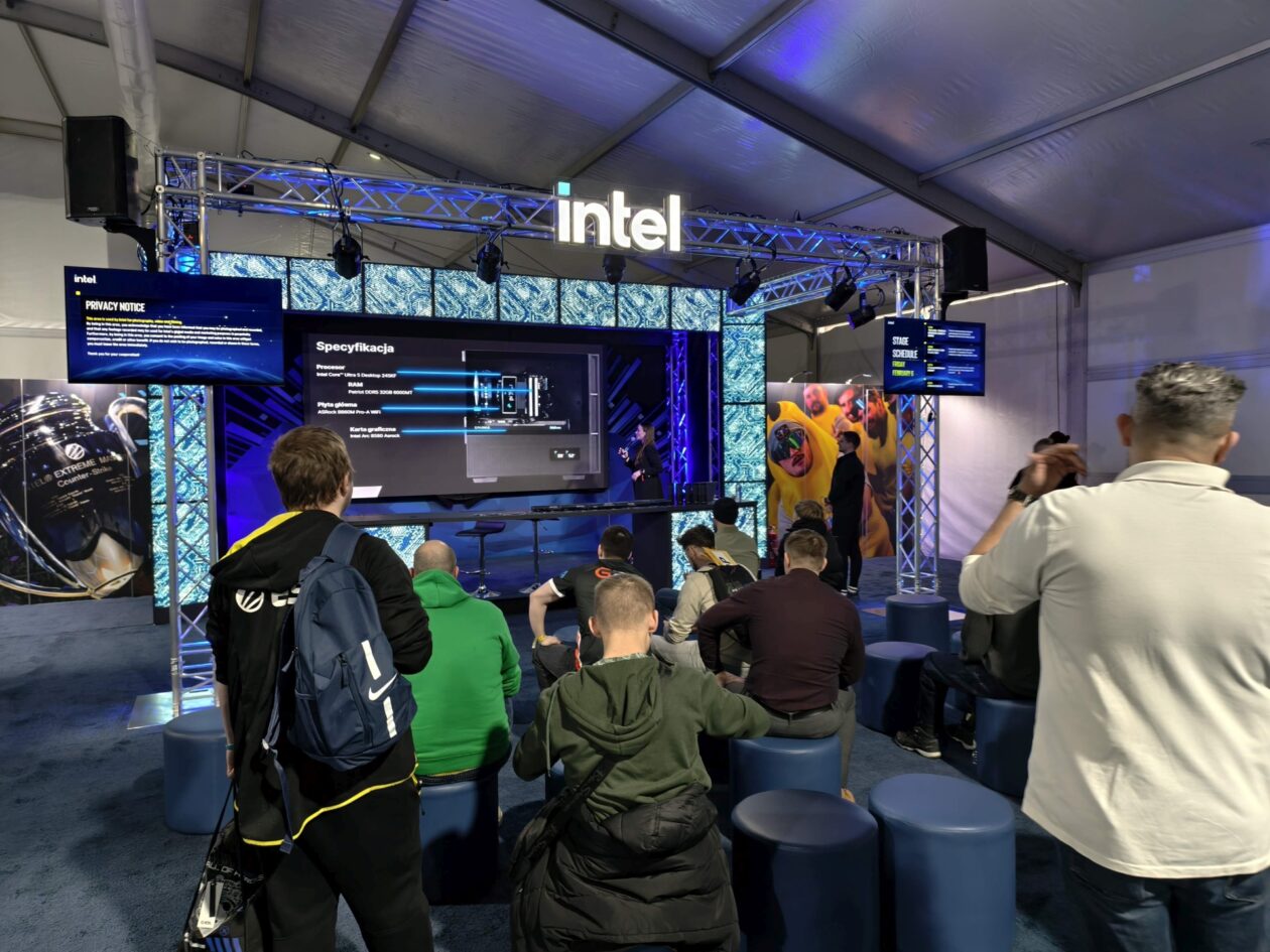 Na początek garść zdjęć sprzed samej Tauron Areny. W tym roku mecze CS2 są główną atrakcją, przed samą halą na odwiedzających czeka jednak całkiem sporych rozmiarów namiot Intela m.in. z niewielką sceną, gdzie odbywają się różnego rodzaju aktywności, a także ze stanowiskami, na których można sobie pograć. Tuż obok znalazły się punkty z czymś gorącym do przekąszenia i… to w zasadzie tyle.