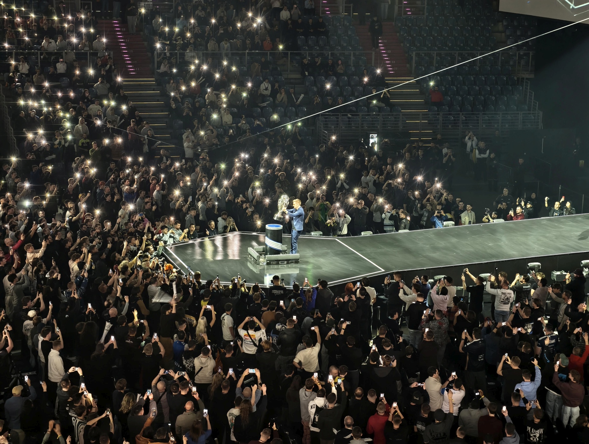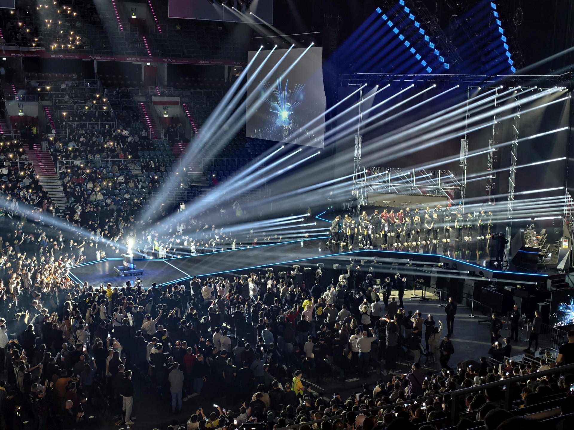 Wnętrze zaś… wyraźnie nawiązuje do tego, co było w Spodku, i to pod wieloma względami. Mamy więc usługowy „pierścień”, głównie z gastronomią, oraz wnętrze. Siłą rzeczy tym razem większe, ale wyglądem sceny i reżyserią spektaklu przypominającą katowickie widowisko. Tutaj „przesiadka”, mam wrażenie, odbywa się dość bezboleśnie. Zresztą, zobaczcie sami, jak to wygląda.