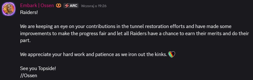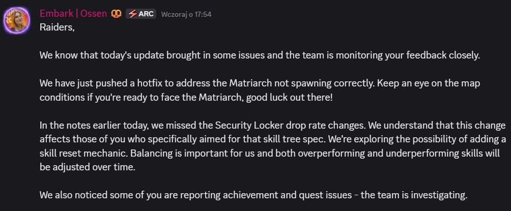 źródło: kanał Discord ARC Raiders