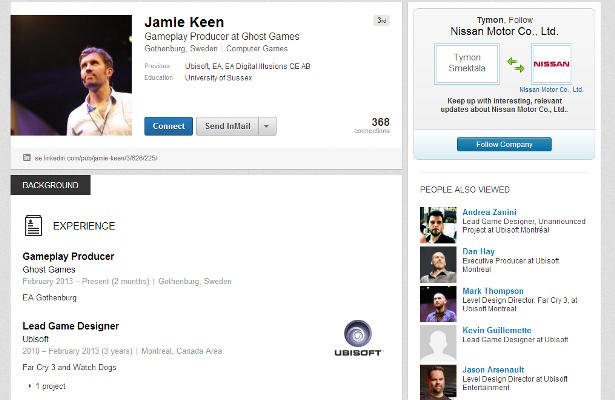 1. Ciekawe informacje przynosi profil na portalu LinkedIn należący do Jamie Keena, głównego projektanta gry Watch Dogs. Zgodnie z nim Keen nie pracuje już dla Ubisoftu, a własnie przeniósł się do niedawno założonego studia EA w Göteborgu.