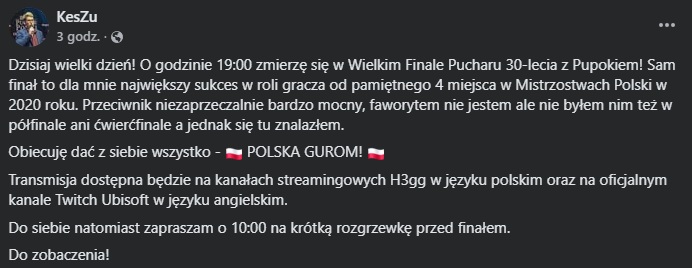 Co ciekawe, turniej współorganizują Ubisoft i polska grupa H3gg, co oznacza, że KesZu jest w tym turnieju nie tylko zawodnikiem, ale i organizatorem. Transmisję z finału obejrzycie natomiast na kanałach H3gg na YouTubie, Twitchu oraz Kicku. Spotkanie będziecie mogli również obejrzeć w wersji anglojęzycznej na oficjalnym kanale Ubisoftu na Twitchu.