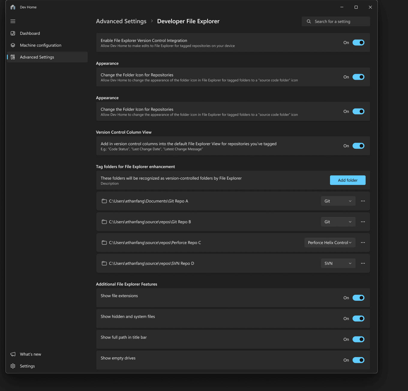 - Stworzyć jednolity interfejs użytkownika do zarządzania/dostosowywania nowych doświadczeń deweloperów w systemie Windows (np. Natywny Eksplorator Plików + integracja kontroli wersji), aby byli oni w stanie szybko iterować nowe funkcje i opcje;