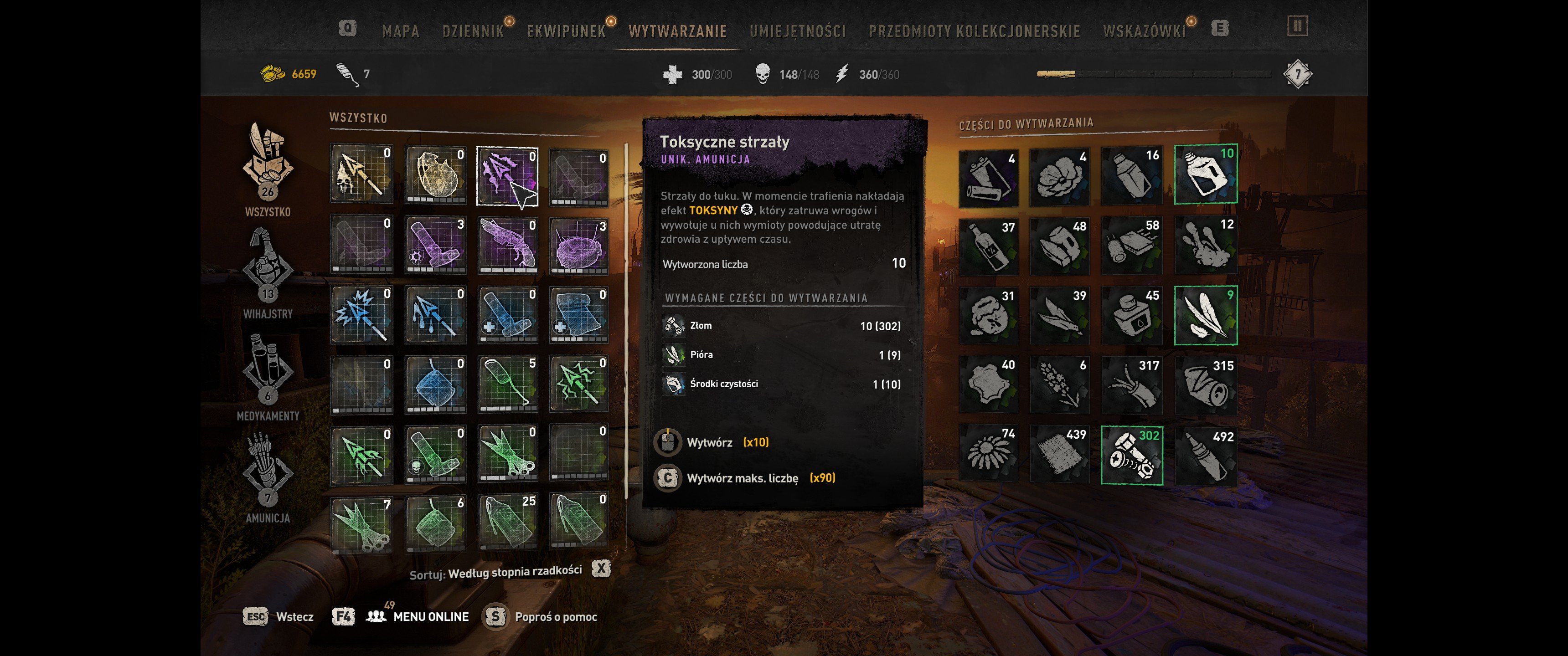 Oprócz standardowych strzał możemy również korzystać z ich bardziej rozwiniętych wersji: porażających, tnących, wybuchowych, toksycznych i ognistych. Wytworzenie ich wymaga jednak dodatkowego surowca – odpowiednio przewodów, ostrzy, alkoholu, środków czystości lub żywicy. Za tymi materiałami najprościej rozglądać się po drodze lub szukać ich w sklepach. Kosztują śmieszne pieniądze (jak i reszta surowców), warto więc kupować je na zapas – tym bardziej że materiały do craftingu, z tego co zauważyłem, nie przeciążają postaci gracza. Ani razu nie udało mi się przekroczyć ich limitu, więc najpewniej miejsce na nie mamy nieograniczone – a dźwigałem po kilkaset sztuk złomu, dla przykładu.