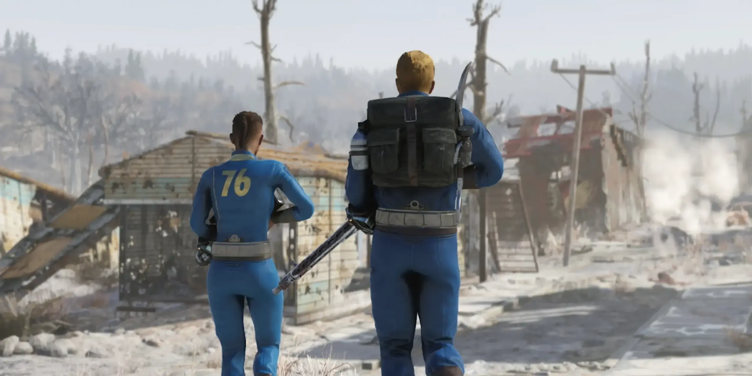 Pierwszy zwiastun gry pojawił się w maju 2018 roku. Zaczynał się od kojarzonego z Falloutem 4 utworu „I Don’t Want to Set the World on Fire”, który płynnie przechodził w muzyczną wizytówkę serii, czyli „Country Roads”. Usłyszeliśmy przemówienie prezydenta mówiącego o odbudowie świata i oglądaliśmy wnętrze krypty o numerze 76.
