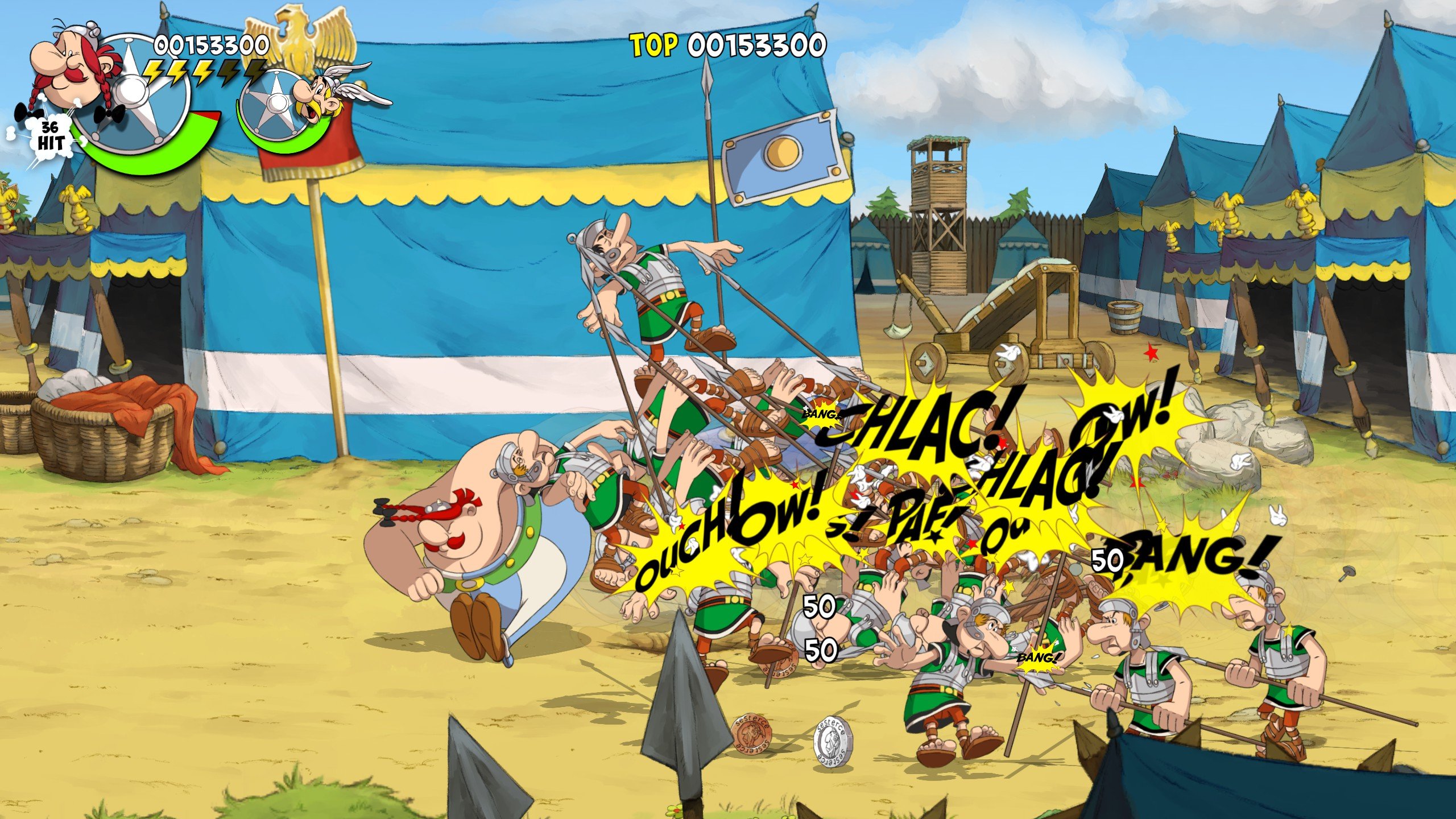 Asterix & Obelix: Slap them All! oferuje tryb lokalnej kooperacji, gdy jednak próbujemy sił w pojedynkę, w dowolnym momencie możemy przełączać się między bohaterami. Ich skuteczność bojowa jest w zasadzie podobna – Obeliks wydaje się mieć bardziej zróżnicowany garnitur ciosów, Asteriks z kolei nadrabia ruchliwością, bo jest z oczywistych względów szybszy. Ostatecznie jednak lepiej walczyło mi się tym pierwszym, a powód okazał się dość błahy. Obeliks jest większy, a ekran momentami tak gęstnieje od mięcha armatniego, że mniejszy bohater gubi się w gąszczu przeciwników, wtedy zaś łatwiej zebrać niezasłużony łomot.