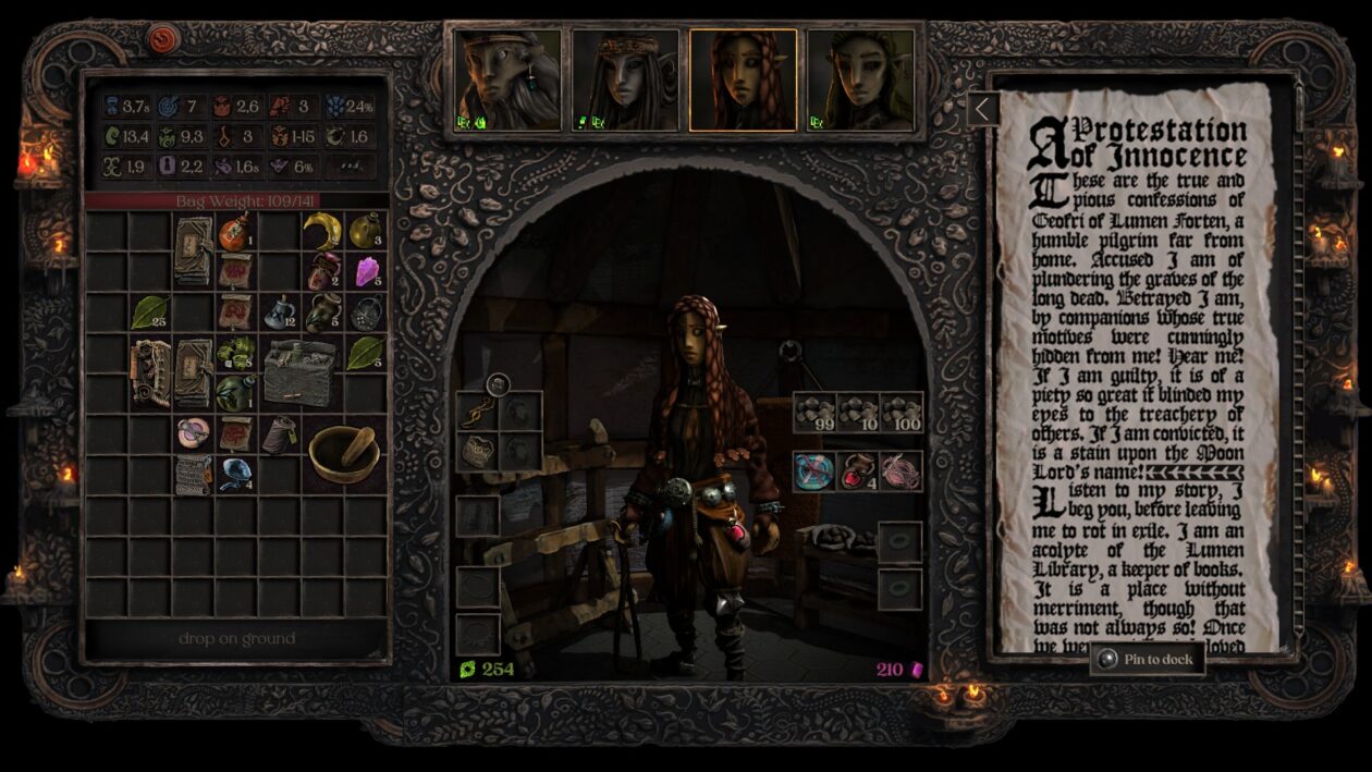 W praktyce dostajemy dobrze obrobiony literacko, archaicznie stylizowany i dość głęboki pod względem lore’u pretekst do uskuteczniania jatki w lochach i leśno-wyspiarskich ostępach. Powoli, w przygodowy i bezpretensjonalny sposób, gra serwuje całkiem zajmującą awanturniczo-kryminalną historię fantasy w starym stylu, acz z odrobiną świeżości. Do tego całość ma nieco egzotyczny, a jednocześnie przyziemny klimat.