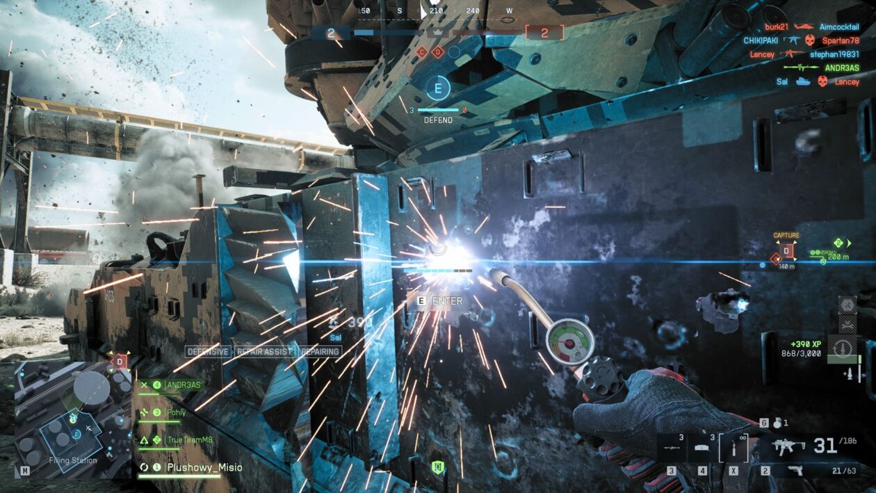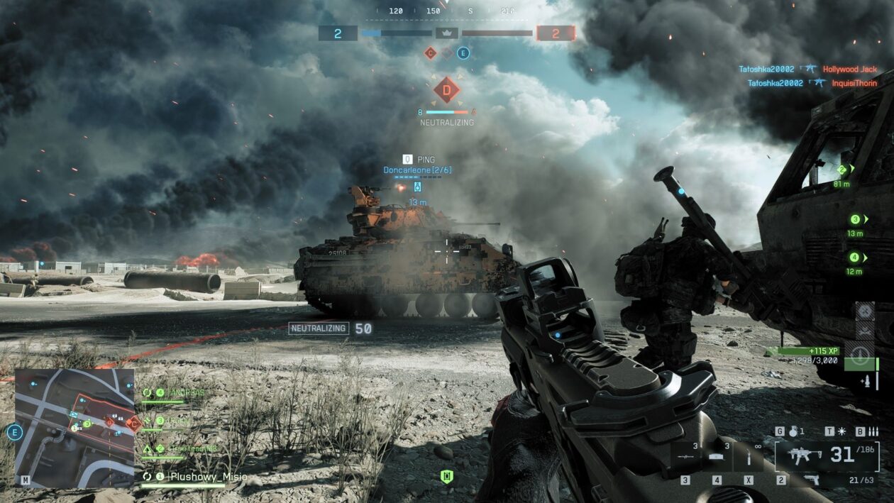 Ale chyba to, co najbardziej lubię podczas obcowania z Battlefieldem 6 to poczucie chaosu. W wielu punktach mapy trwa zacięta walka, wokół przelatują pociski, a pobliska ściana eksploduje od trafienia z czołgu. Ktoś obok mnie osuwa się po otrzymaniu postrzału od snajpera. W ułamku sekundy chwytam go za mundur i zaciągam za resztki muru, aby podać ratujący życie zastrzyk. Chwilę później zza naszych pleców przejeżdża czołg, który zapewnia osłonę pozwalającą przełamać obronę wroga i zająć punkt kontrolny… Czysta adrenalina!