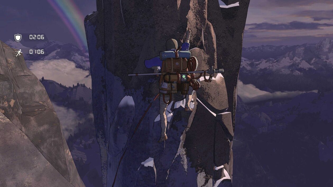 Regulujemy je wszystkie za sprawą zbieranych po drodze i przechowywanych w plecaku płynów, przekąsek oraz medykamentów. Miejsce w torbie jest jednak ograniczone i choć da się nią potrząsnąć, aby upchnąć do środka coś jeszcze, tak należy często pozbywać się jej zawartości, czy to poprzez konsumpcję, czy to poprzez recykling – nasz robotyczny towarzysz, Climbot, przepala bowiem plastikowe reklamówki i papierki na części zamienne do zaczepów. Bo tak, możemy sobie ułatwiać życie, wbijając w kamienne nawierzchnie haki, jeśli tylko takowe posiadamy, dzięki czemu zminimalizujemy ryzyko śmierci przy upadku. W zapisywaniu postępu pomagają natomiast rozstawiane w konkretnych miejscach namioty.
