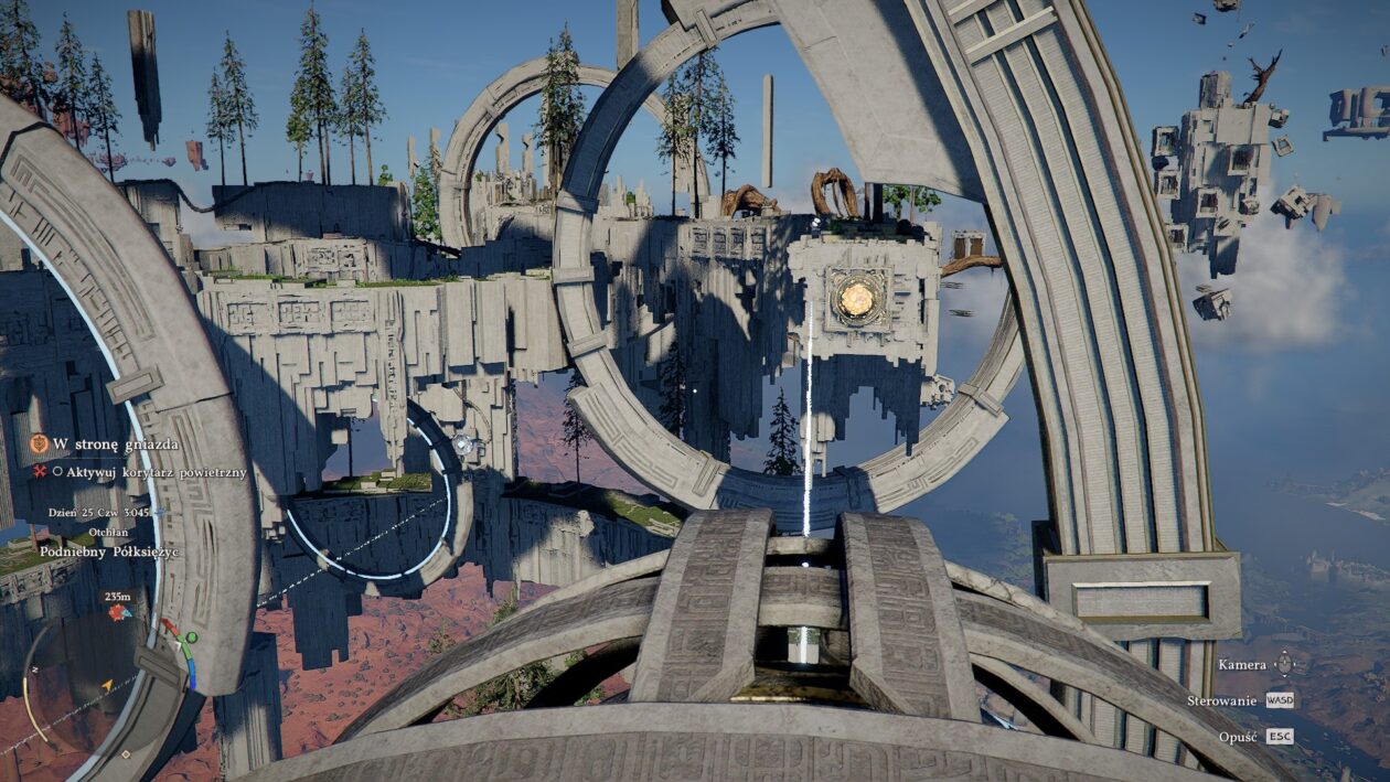 Ale to jeszcze nie wszystko, gdyż dochodzi do tego sporo mocy, inspirowanych Tears of the Kingdom. Noszona u pasa latarnia pozwala odkrywać rozsiane tu i ówdzie tzw. echa przeszłości, a potem odtwarzać je na specjalnym hełmie. Moc aksjomatu umożliwia nie tylko manipulowanie obiektami, ale też po odpowiednim rozwinięciu bujanie się niczym Spider-Man na pajęczynie. Nawet skakać da się na trzy sposoby*: biegnąc przed siebie i wciskając spację, stojąc nieruchomo i aktywując akcję po wycelowaniu kursorem w pożądane miejsce lądowania albo też podlatując za pomocą wymachu skrzydłami.