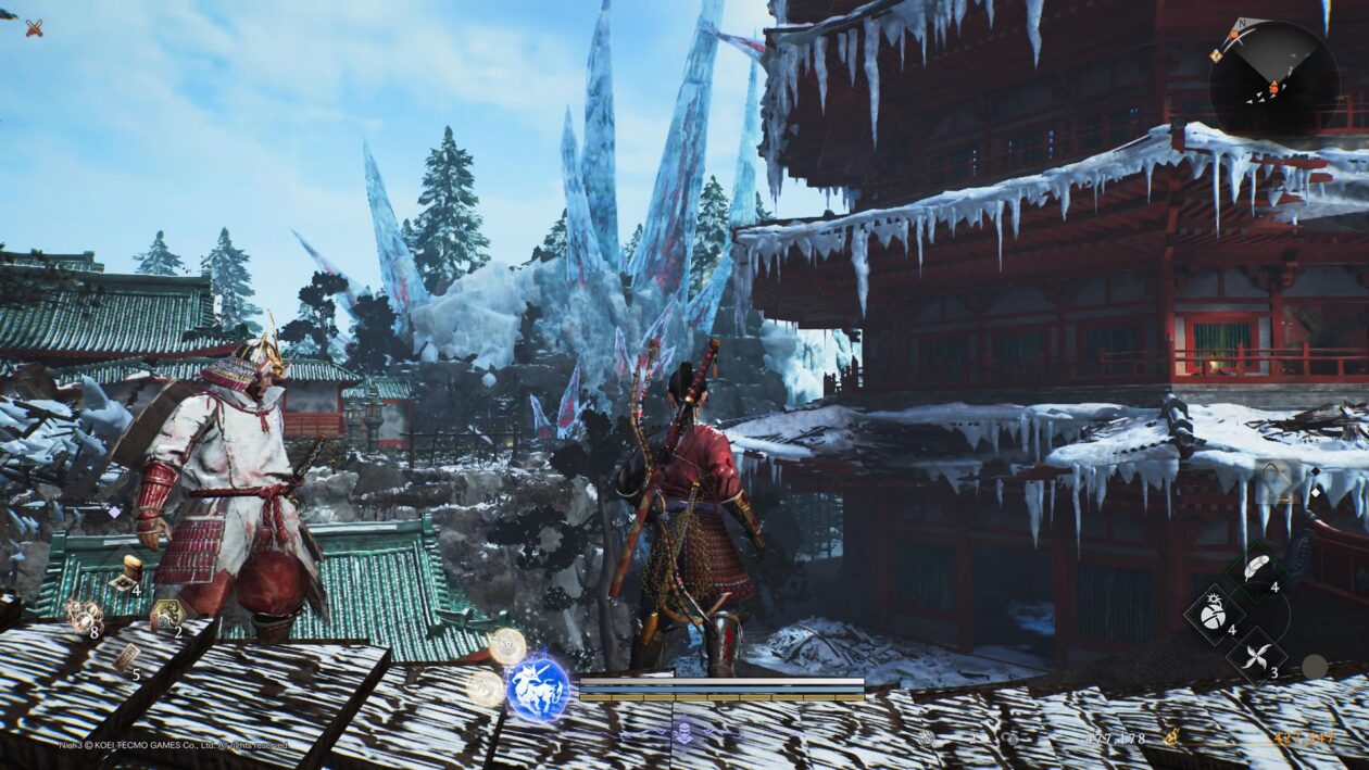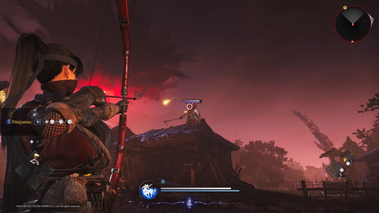 Jest to jedna z największych nowości (zaraz obok otwartego świata, o którym później) wprowadzanych przez Nioh 3. Oprócz klasycznego „trybu” samuraja, dzielącego się na różne postawy oferujące inne kombinacje ciosów, tytuł oddaje w nasze ręce styl ninja. Ten został zaprojektowany z myślą o atakowaniu z doskoku i wyprowadzaniu ciosów w plecy przeciwników, co skutkuje zadawaniem większych obrażeń, niemniej jego główny atut stanowi ninjutsu – komplet umiejętności mogących posłużyć zarówno do podkręcenia naszej mobilności (chwilowe zakopanie się w ziemi lub szybki doskok do wroga), jak i do ofensywy (rozsypywane na ziemi kolczatki albo ogniste shurikeny).