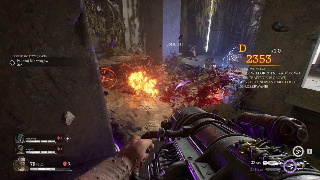 Przede wszystkim trzeba na wstępie zaznaczyć, że to żaden Painkiller. Nie wystarczy przeczołgać gracza przez dantejskie kazamaty i wcisnąć w łapy kołkownicę, by na bezczela podpinać się pod kultowego shootera. To znaczy można to zrobić, ale pozostanie niesmak. Gra niemal zupełnie odcina się od korzeni. Owszem, to nadal dynamiczna strzelanka, lecz diabeł zwykł tkwić w szczegółach, a w tej materii stara i najnowsza odsłona różnią się jak dzień i noc. Nie jest to już doznanie skrojone pod jednego gracza, tylko kooperacyjny hero shooter dla trzech (wybieramy jedną z czterech dostępnych postaci). W przypadku braku chętnych do wspólnej zabawy u naszego boku stają boty, bo tak to skonstruowano, że nawet otwarcie bramy wymaga stawienia się w wyznaczonym punkcie całej drużyny.
