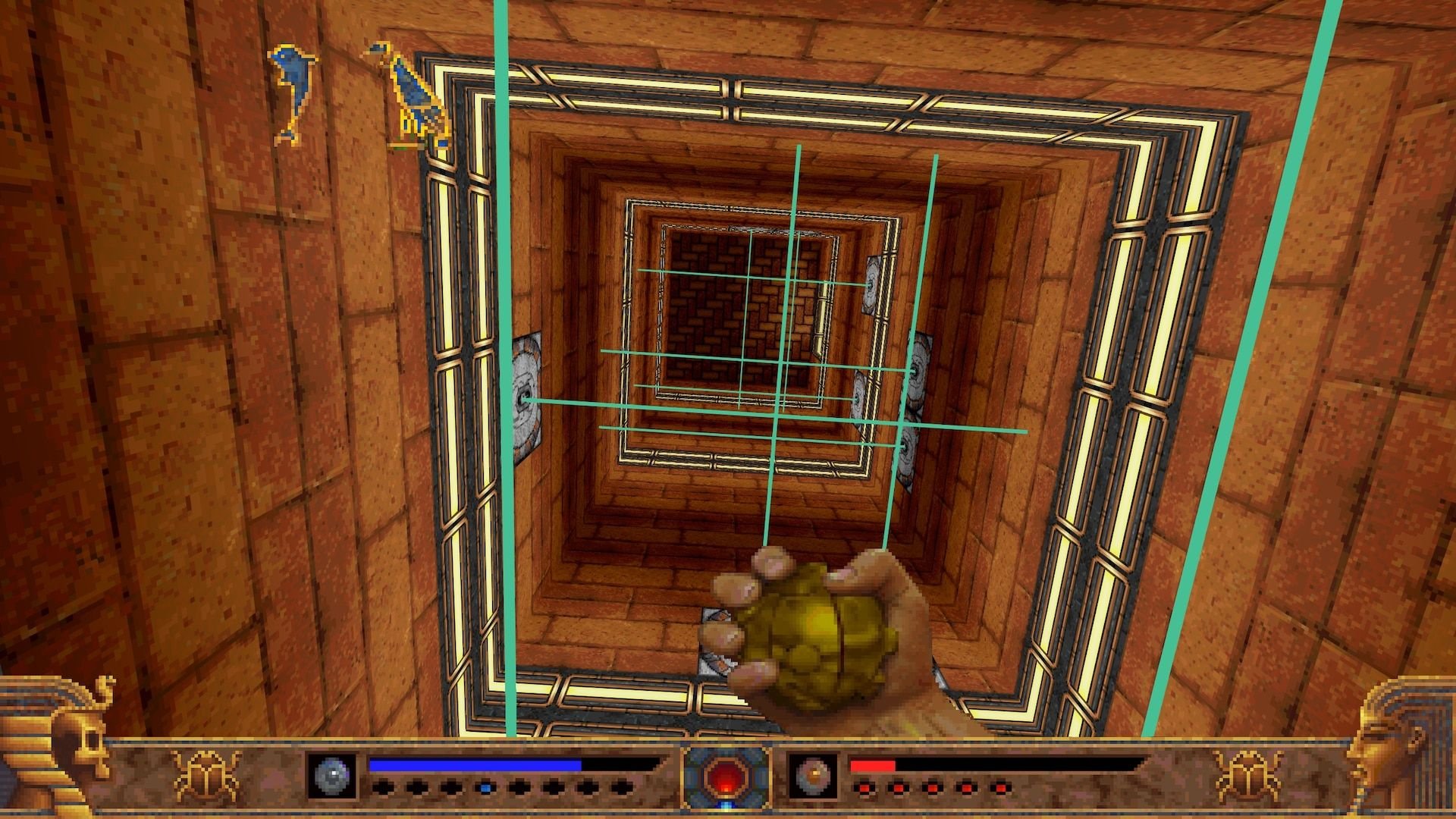 PowerSlave Exhumed nie tylko łączy te wszystkie wersje w jedną, ale dorzuca też nieco od siebie – więcej poziomów trudności, obsługę monitorów panoramicznych i pada, wyższe rozdzielczości i sporo klatek na sekundę, emulację monitora CRT, rozmaite efekty graficzne, możliwość zmiany FOV, achievementy itd. Gra działa na najnowszej wersji autorskiego silnika KEX. To engine, na którym zremasterowano Quake’a, System Shocka, oba Turoki, Blooda, Forsaken, Dooma 64 i Shadow Mana. Autorzy skoncentrowali się na wiernym oddaniu klimatu rozpikselowanych FPS-ów sprzed ćwierćwiecza i ówczesnych mechanizmów rozgrywki (włącznie z konturową i rysowaną na bieżąco mapą, którą możemy nałożyć na ekran).