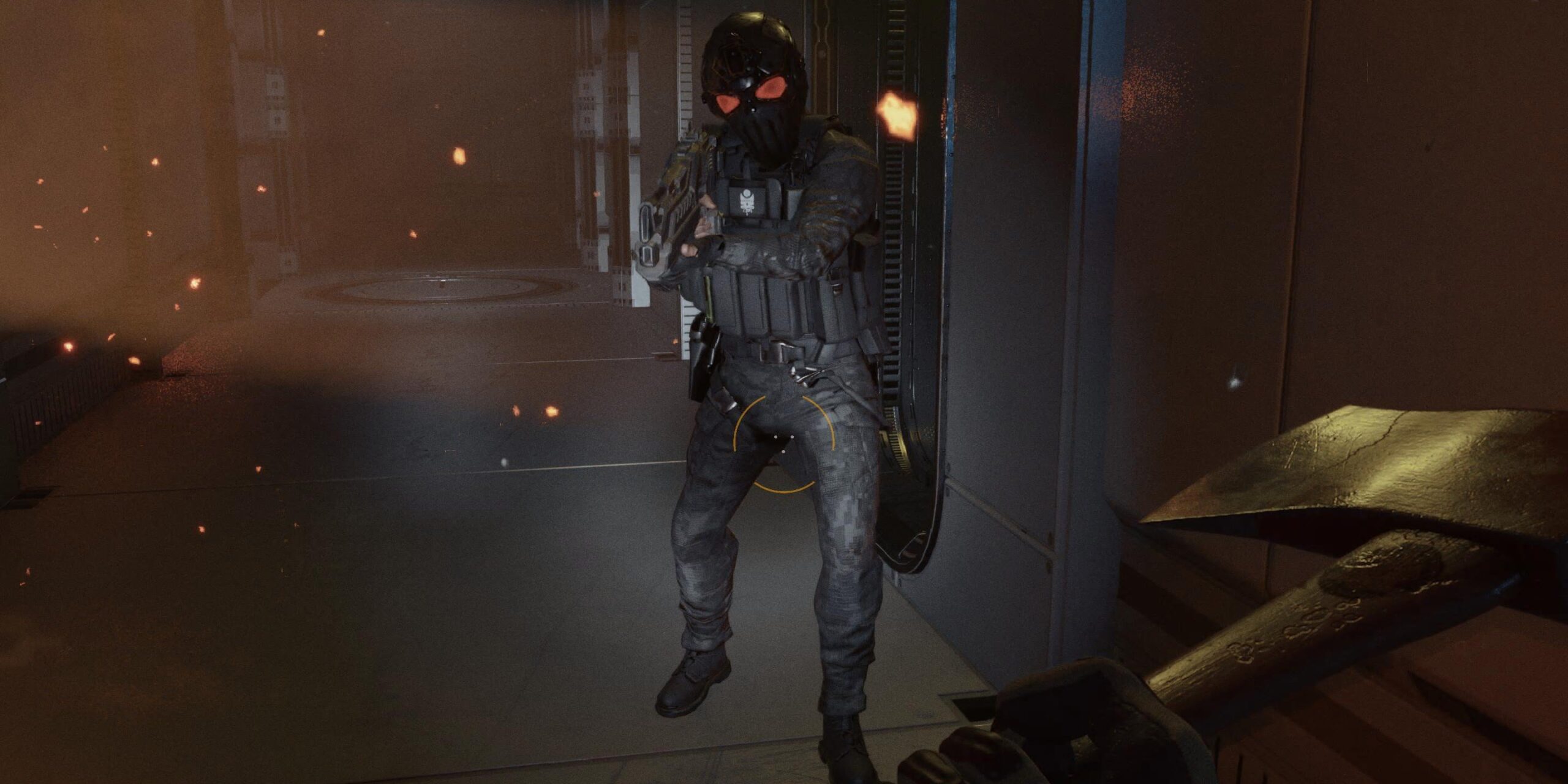 Zaliczam przyspieszony kurs obsługi specjalistycznego sprzętu. Przyznać trzeba, że potraktowano to dość kompleksowo, dając mi do dyspozycji m.in. radio do kontaktu z bazą, topór i piłę do rozwalania słabszych powierzchni, narzędzie ratownicze (czyli coś w rodzaju wielofunkcyjnego łomu) do wyważania drzwi, kamerę termowizyjną oraz maskę, w której dość szybko kończy się zapas tlenu. Uczę się, jak gasić pożary (to, co wyczynia się z wężem, jest przekomiczne, już w samouczku niemal w całości zatapia się w podłodze), a także sprawdzać dłonią temperaturę drzwi, by nie oberwać wstecznym ciągiem płomieni, co sygnalizuje delikatne drżenie pada.