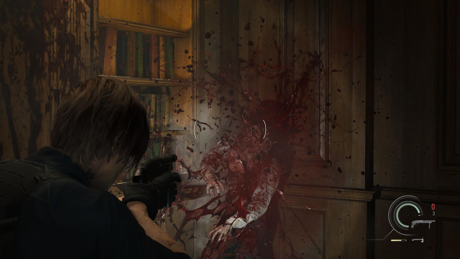 Jeśli jednak w RE szukacie czegoś innego, znajdziecie to we fragmentach z Leonem, które są nastawione na nieskrępowaną akcję. Twórcy pokazują to właściwie od razu – po kilku minutach dostajemy bowiem w swoje ręce wyrwaną zabitemu zarażonemu piłę mechaniczną i robimy z niej jedyny właściwy użytek. To dobry moment, by zwrócić uwagę, iż krew leje się tu gęsto – momentami aż trudno uwierzyć, że (jeszcze do niedawna ludzkie) ciało może mieć w sobie tyle juchy. Jest też brutalnie: zombie odpadają kończyny, pękają głowy, a w przypadku śmierci bohaterowie bywają… rozdzierani na pół.