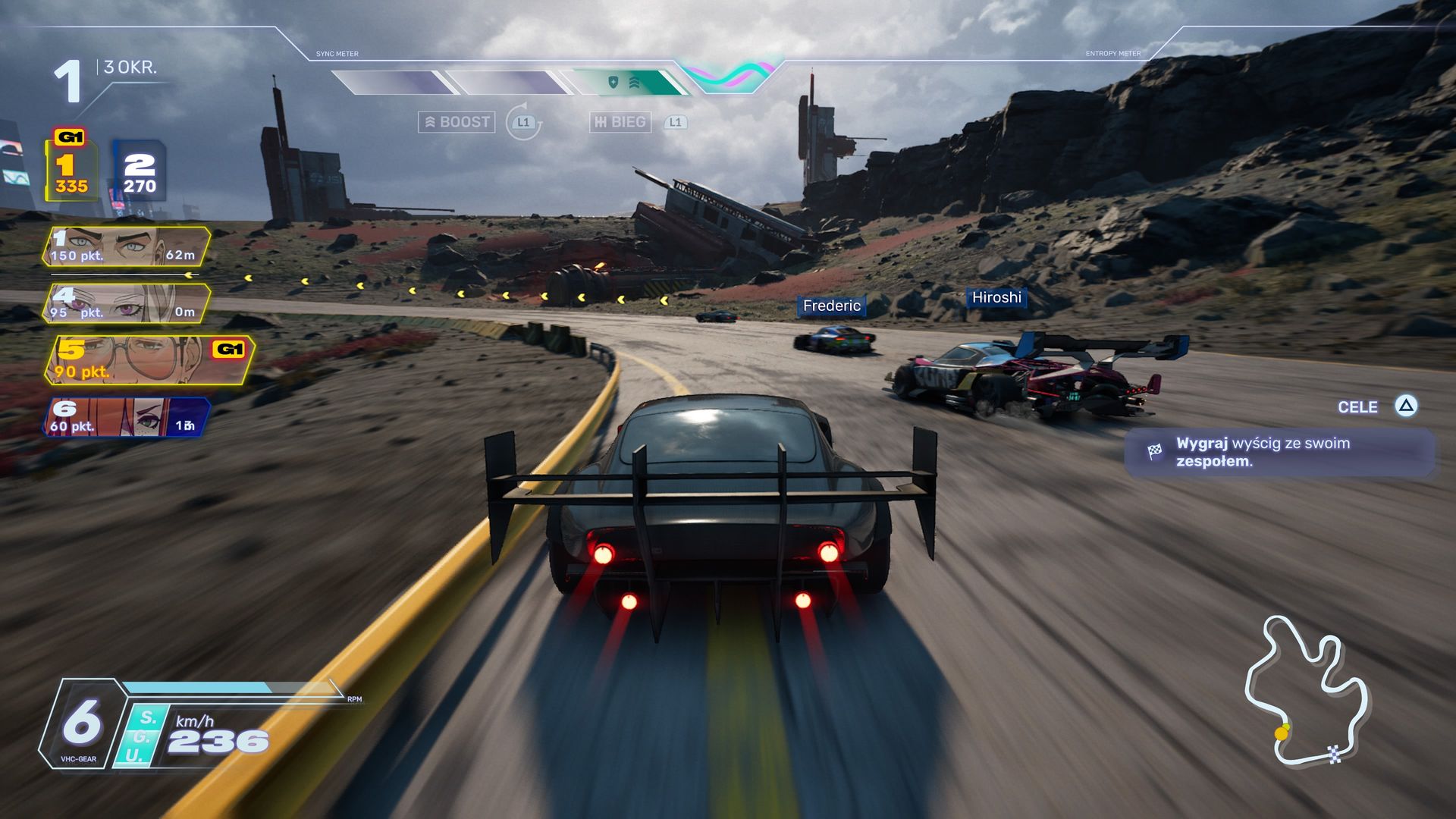 Co chwilę coś się dzieje w tle, każda postać ma wyróżniający ją charakter i w mniejszym lub większym stopniu wpływa na wydarzenia. Chyba nigdy wcześniej nie grałem w grę wyścigową, w której otoczka fabularna tak bardzo motywowałaby do kolejnych zmagań na torze. Tak, NFS-y czy podobne racery serwowały nieraz proste historyjki o anonimowym facecie i np. 20 rywalach do rozwalenia, a i zawierały krótkie wstawki filmowe. Wypadały jednak bezpłciowo, papierowo i po prostu bez duszy. A tutaj? Ciągła jazda bez trzymanki!