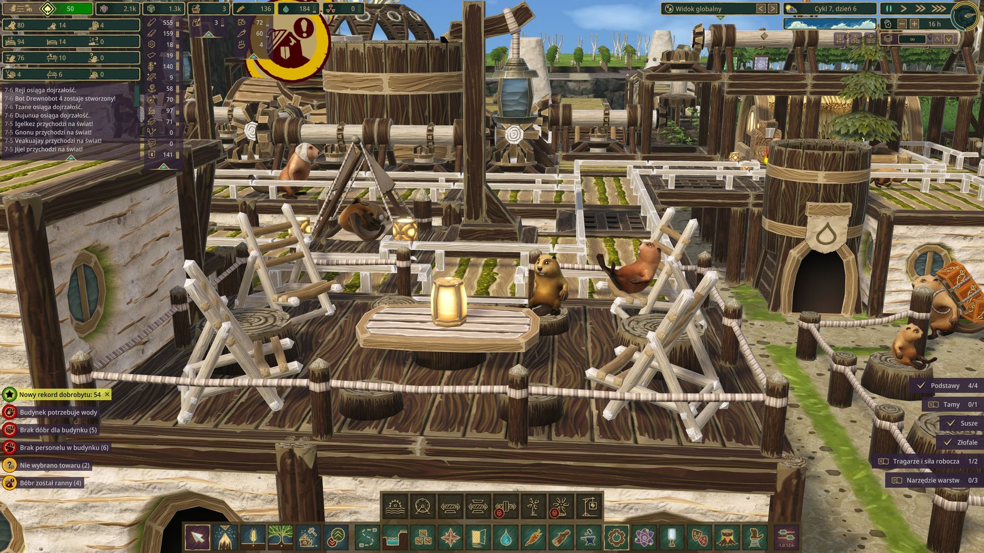 A gdy już ogarniemy tak przekształcanie terenu, jak i automatyzację, Timberborn odkrywa pewną swoją słabość. Gra przestaje bowiem eskalować zagrożenia, a presja, by przetrwać, wyraźnie maleje. Kiedy kontrolujemy środowisko, susze czy wylewy złowody przestają być straszne. Nie każdemu przypadnie to do gustu, choć ja akurat czerpałem ogrom frajdy z automatyzowania działania śluz i obserwowania poczynań moich podopiecznych. Wiem jednak, że znajdą się gracze, w przypadku których wspomniana utrata napięcia uczyni zabawę mniej ciekawą. Tym bardziej że Timberborn nie narzuca jasno określonych celów – to gracz sam decyduje, co jeszcze chce osiągnąć.