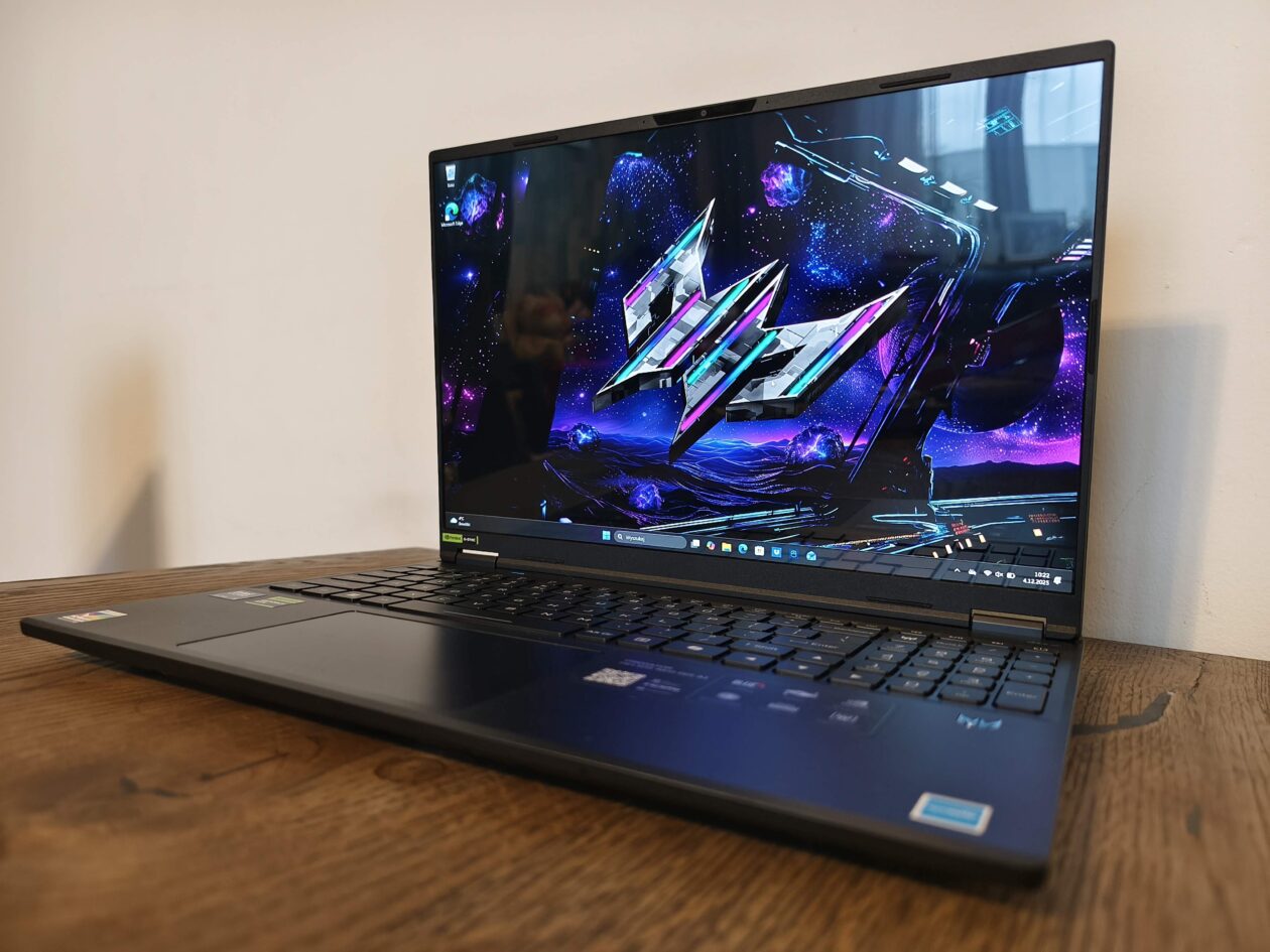 Jak już zostało wspomniane, sercem urządzenia jest karta graficzna z serii GeForce RTX 50 – a więc rodziny najnowszych konstrukcji firmy NVIDIA, które w porównaniu z poprzednią generacją zapewniają duży skok wydajności niezależnie od zastosowań. Chipy te, opierając się na architekturze Blackwell, robią wyśmienity użytek z mocy AI: dzięki rdzeniom Tensor piątej generacji i nowym technikom renderowania, takim jak DLSS 4 z Multi-Frame Generation, możesz cieszyć się większą niż dotychczas liczbą klatek animacji na sekundę i lepszą jakością obrazu. Ich wielką zaletą jest również szybkie przetwarzanie ray tracingu. Odpowiada za to czwarta już generacja rdzeni RT, których zastosowanie przekłada się nie tylko na płynną animację w trybach ze śledzeniem promieni światła, ale i jeszcze bardziej realistyczne oświetlenie i cienie w grach. Wszystko to w praktyce przekłada się na wyśmienity obraz dobrej jakości i płynność, o jakiej jeszcze do niedawna mogliśmy pomarzyć. Innymi słowy, laptop pozwala bez przycinek spędzać czas z najbardziej wymagającymi i najlepiej wyglądającymi tytułami. Jeszcze do niedawna nie było to po prostu możliwe.
